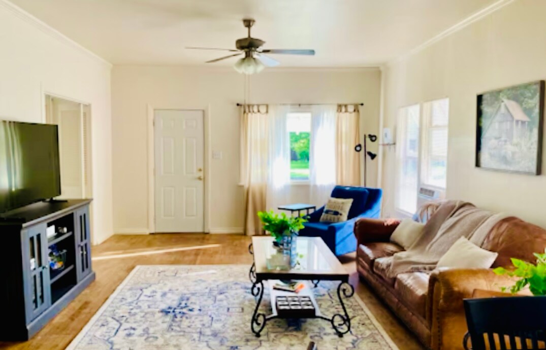 Bring the whole family to this great place with lots of room for fun. WHEELCHAIR ACCESSIBLE. Located downtown for a front row seat of all the festivities going on as well as shopping and dining. Lots of room inside for hanging out inside the house or out in the bay area playing games or watching activities through the windows or from the bench outside. You can also drive your vehicle inside the building for more convenience. Recently added a daybed with a trundle bed to sunroom.