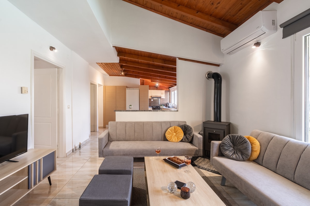 Doświadcz ponadczasowej elegancji w Afrodite Suite. Nasz starannie zaprojektowany apartament oferuje idealne połączenie nowoczesnego luksusu z akcentami starożytnego uroku. Wyjątkowo dopasowany do ciepłego oświetlenia wnętrza i blasku kominka, nasz apartament tworzy miękkie, kapryśne środowisko. Obiekt jest wyposażony w awangardowe systemy i pluszowe łóżko, które zapewniają najwyższy komfort. Ciesz się nocami, zrelaksuj się przy kominku i zanurz się w lokalnej kulturze i gościnności.