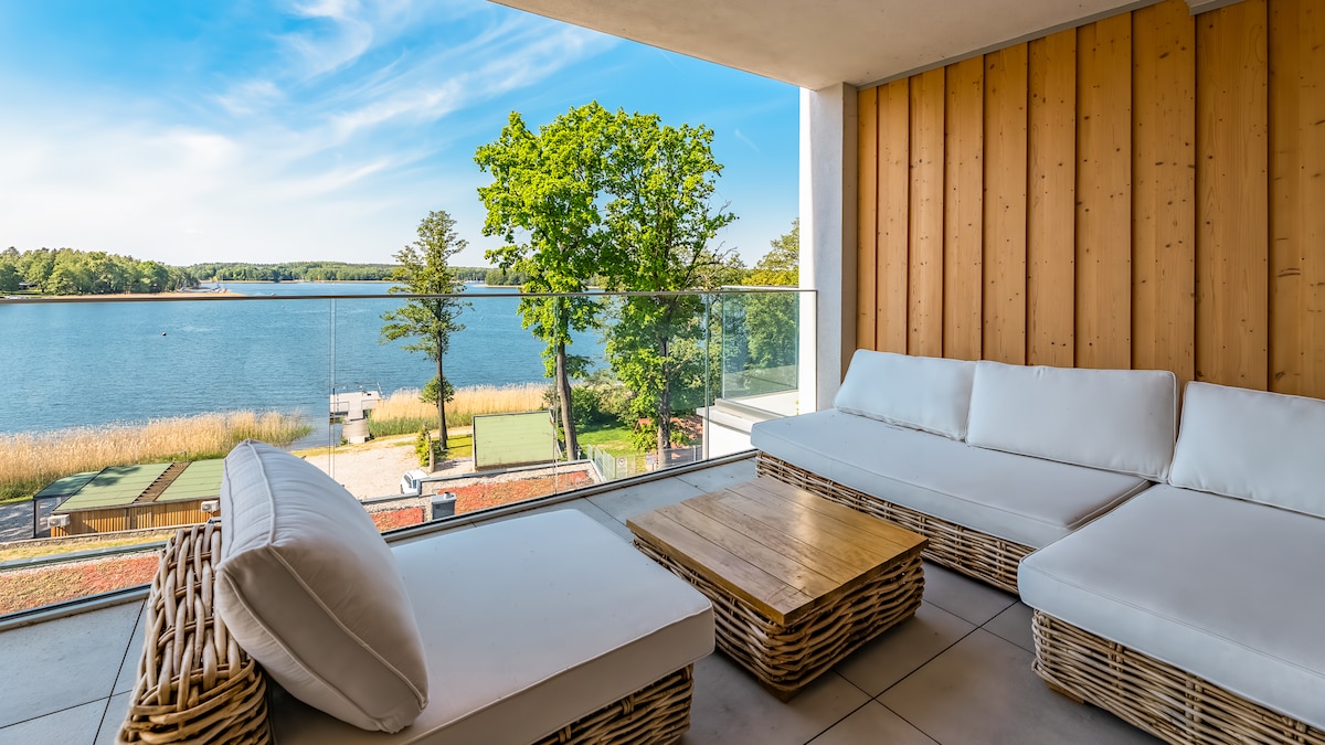 Nowoczesne mieszkanie obok rzeki i jeziora