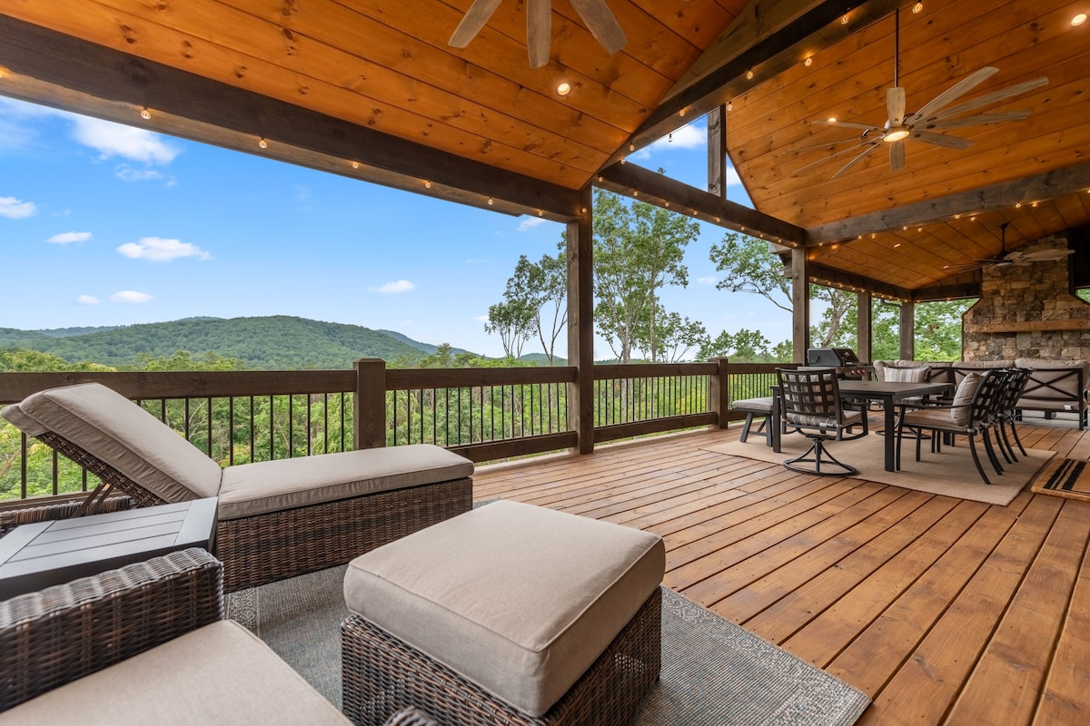 Witamy w Serenity Ridge Lodge położonym między Ellijay i Blue Ridge w górach północnej Georgii! Tradycyjna rustykalna architektura, w tym ciężka drewniana konstrukcja słupowo-belkowa, doskonale równoważy nowoczesny design przemysłowy. Zapierające dech w piersiach, warstwowe widoki na góry zarówno budzą podziw, jak i wywołują poczucie spokoju. Niestandardowe meble, ręcznie kute oprawy oświetleniowe i niezliczone detale wystroju w tym designerskim domu zapewniają gościom komfort i luksus.