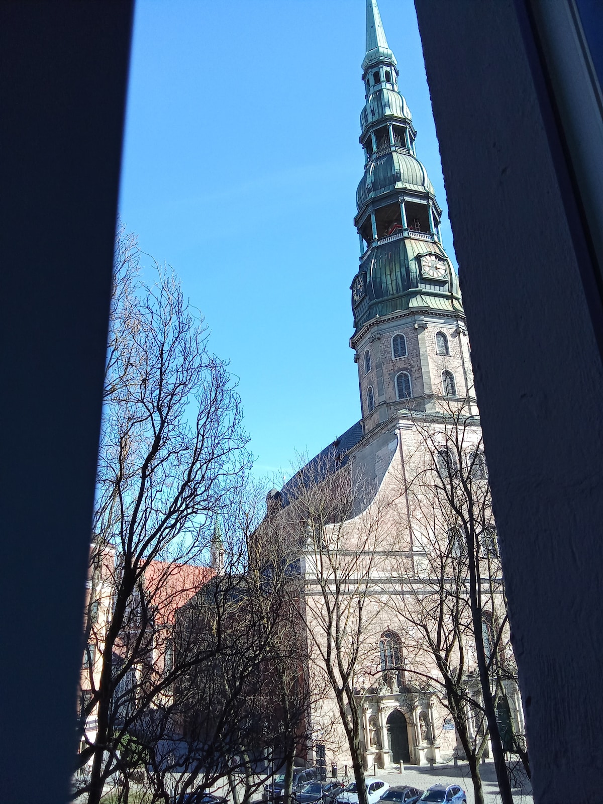 Riga Old Town greatest location. Spacious (85 sqm) apartment with amazing views from the windows from one side overlooking charming and small cobblestone street and majestic St. John's Church from other side -view to St. Peter's church. Lots of light and space. Just steps away from St.Peter's church, Old Town's shopping centre with large grocery store and the all main Riga attractions. Great floor plan suitable for families and Group stays- with two separate bedrooms and spacious living room.