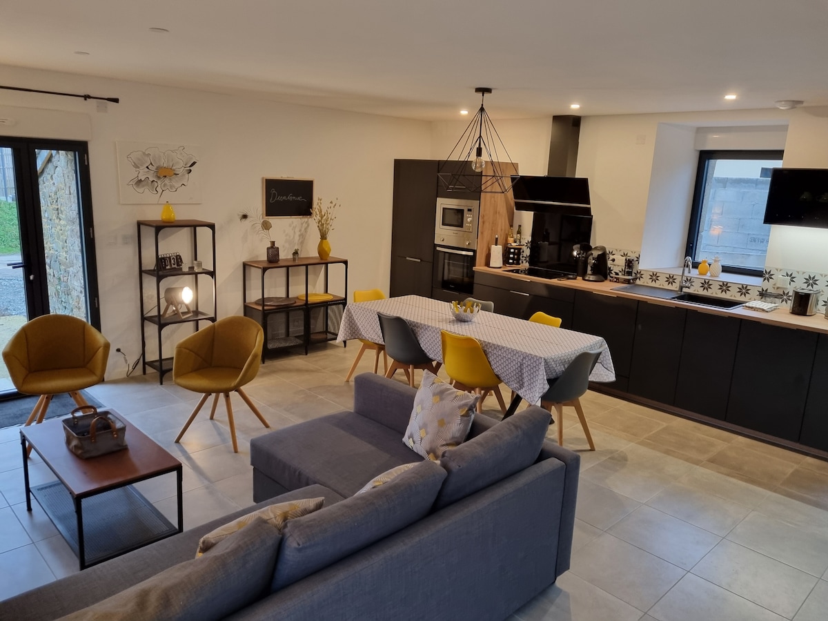 Witamy w domu Amo, który zachwyci Cię spokojem, prostotą i przyjaznością w zielonej scenerii na wsi, gwarantując zmianę otoczenia! 4 km od miasteczka (piekarnia/sklep spożywczy bar/tytoń) 8 km od Dol de Bretagne (supermarkety, naleśnikarnie, restauracje, dworzec TGV PARIS/ST MALO. Główne atrakcje w promieniu 20/30 minut: Combourg 13 km, Cancale, St Malo, Dinard i plaża 25 km, Mt St Michel 30 km. Jesteśmy do Twojej dyspozycji, aby Ci doradzić