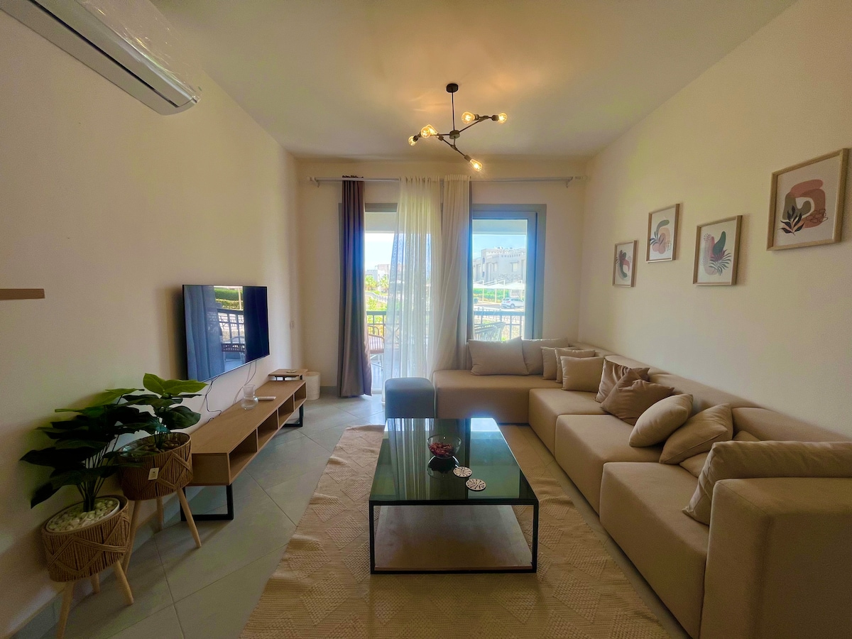 Luxury Golf-View Chalet with Private Garden | Ein Bay Ain Sokhna Luxury 2-bedroom chalet in Ein Bay Ain Sokhna with a private landscaped garden and serene lagoon view. Perfect for golfers, families, or couples seeking a peaceful escape. Enjoy full access to resort amenities including beach, pools, and golf facilities. A premium retreat offering comfort, privacy, and relaxation—just a short drive from Cairo.