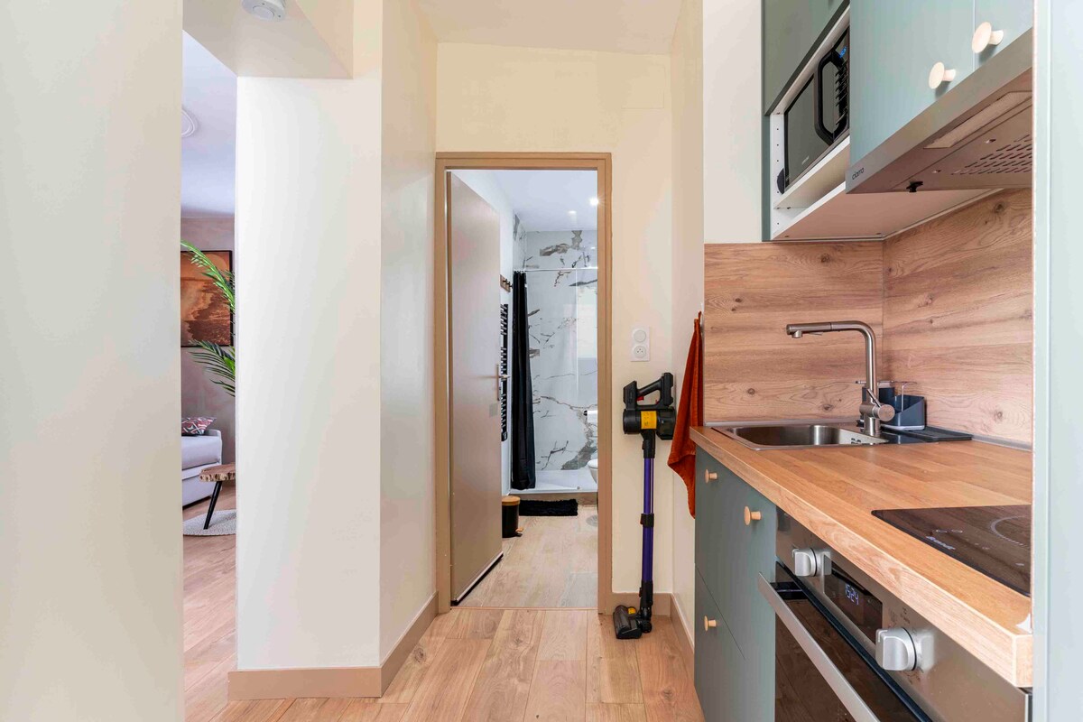 Relax in this calm and elegant accommodation. -Main piece : Washing machine and dryer - Fitted and equipped kitchen: Nespresso, toaster, kettle, fridge, microwave, dishes and accessories - Bathroom with shower Hair dryer, towel dryer Room equipped (140cm bed, wardrobe, TV) Sheets and towels provided Cleaning included Free parking space. Close to the St Herblain Polyclinic Close to public transport. (10 min Tram 1 / 2 min Bus 23 / 3 min ChronoBus C20 / 6 min Bus 11)