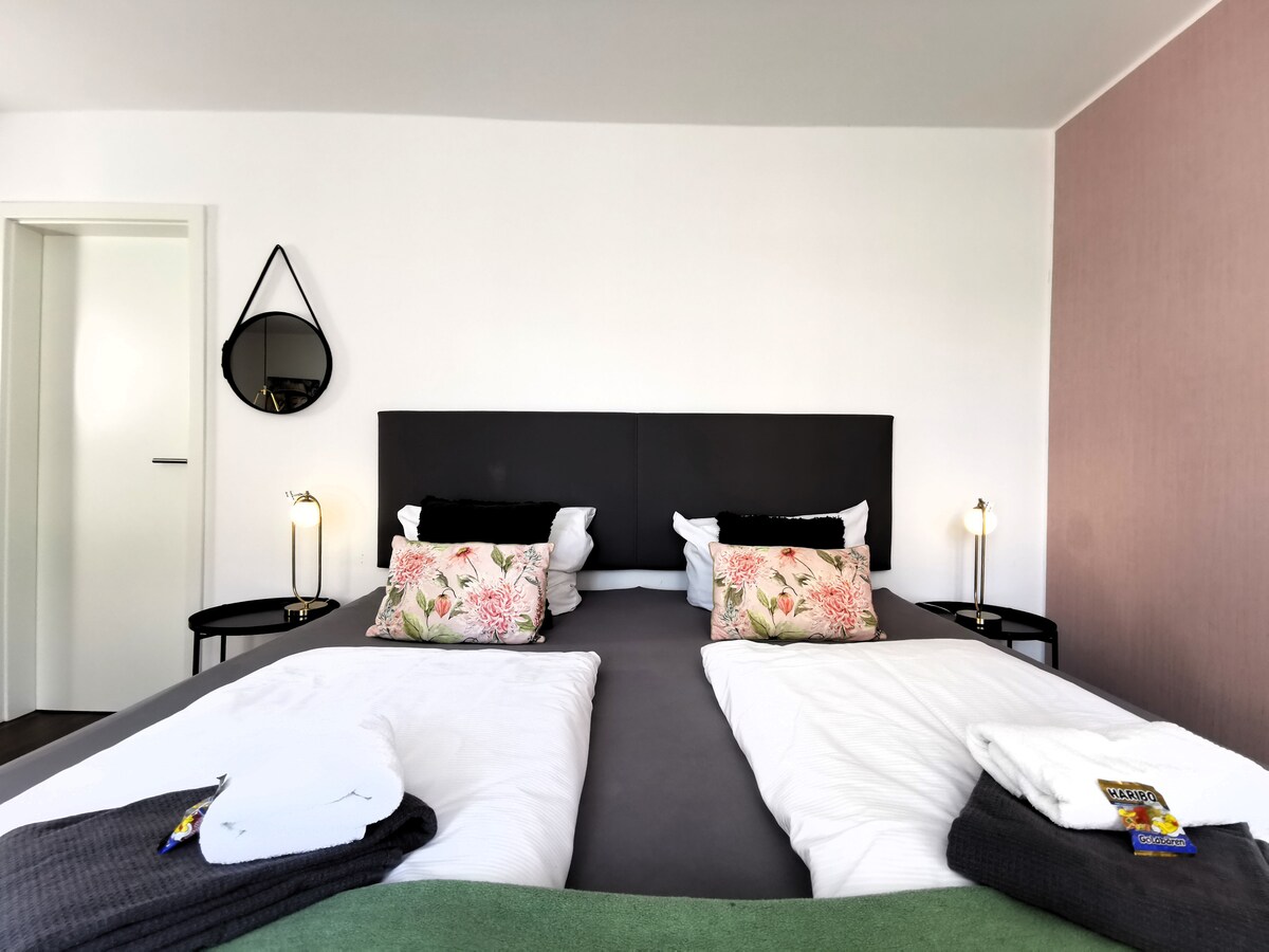 Ekskluzywny apartament z prywatną łazienką i łóżkiem wodnym. Dostęp przez korytarz / wspólną kuchnię, która dzieli trzy apartamenty. Apartamenty są izolowane dźwiękiem, dzięki czemu gwarantują spokojny i niezakłócony pobyt! Ta nieruchomość jest szczególnie odpowiednia dla osób podróżujących służbowo lub na podróż do miasta.