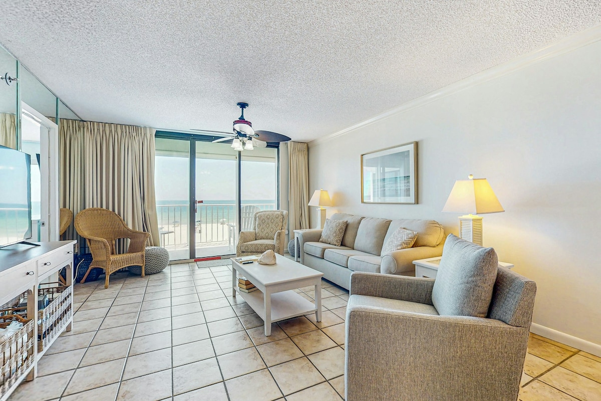 **Niedawno odnowione wnętrze!** Poznaj oszałamiający Gulf of America, korzystając z komfortu tego apartamentu przy plaży z 2 sypialniami z łóżkiem typu King i 2 łazienkami, położonego bezpośrednio na plaży Pensacola Beach, uznanej za najlepszą plażę w Ameryce w ramach plebiscytu Condé Nast Traveler Readers' Choice Awards! Ten apartament przy plaży charakteryzuje się żywym wnętrzem z akcentami nawiązującymi do plaży, prywatnym balkonem z panoramicznym widokiem na ocean oraz dostępem do 2 basenów (z których jeden jest podgrzewany) i jacuzzi. W pobliżu, w odległości krótkiego spaceru, znajdują się najlepsze restauracje i sklepy przy plaży.