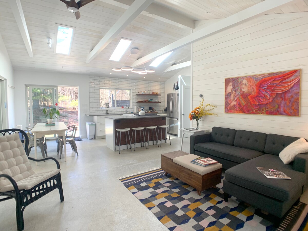 Recently featured in Vogue as one of “The Best Airbnbs in Upstate New York for a Weekend Away From the City” - A cozy getaway upstate on 2 acres of beautiful Catskill land. It's only 8 minutes to Woodstock, 5 minutes to the village of Saugerties, and there’s hiking, skiing and swimming within minutes. The entire second floor has been newly renovated including the bathroom and both bedrooms. The first floor is an open layout with kitchen, living and dining areas leading to the backyard deck.