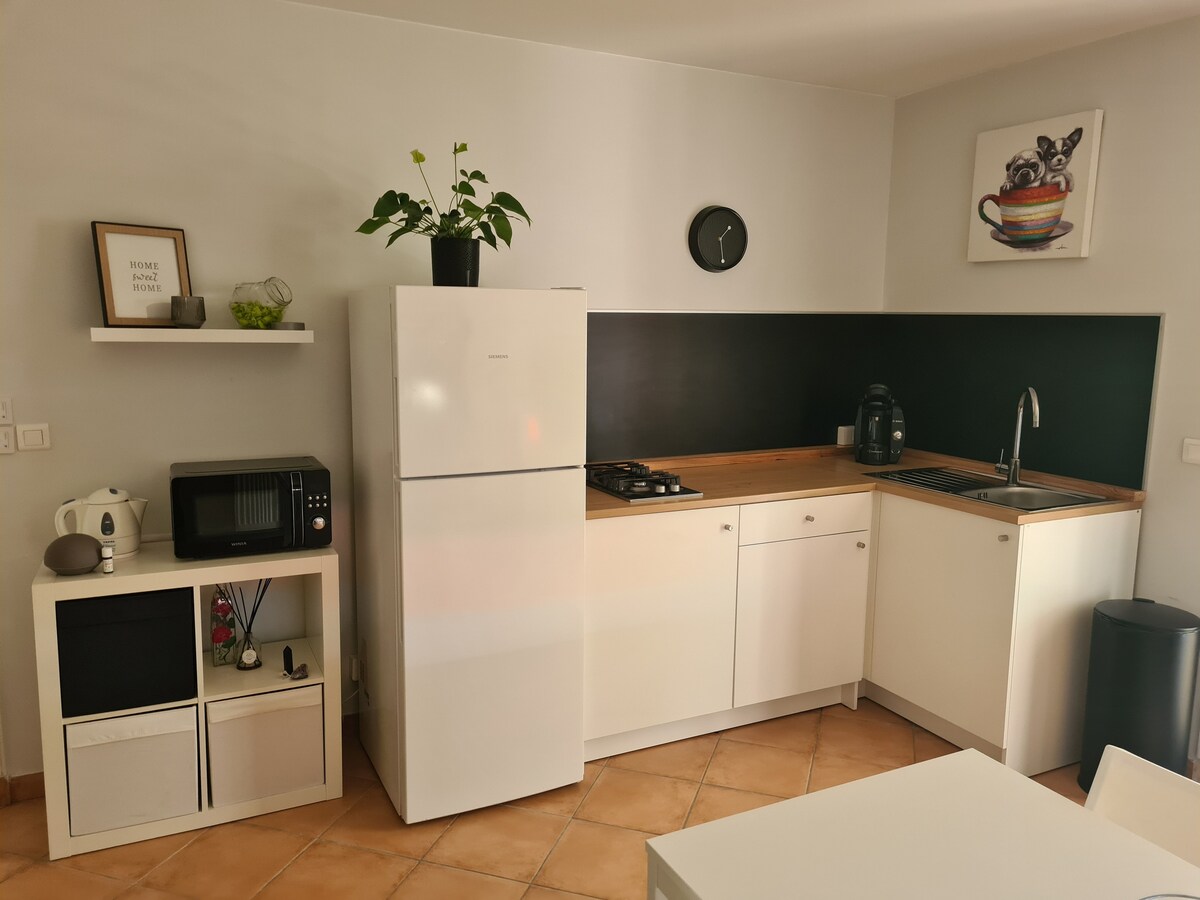 ✨Studio calme et chaleureux, spécialement pensé pour le repos et le bien être. Après une journée active, retrouvez un intérieur apaisant et idéal pour vraiment récupérer en toute quiétude !🌺 🌷Sans TV, l’atmosphère est sereine, propice à la détente. 🍀Lit confortable avec oreillers à mémoire de forme, linge de lit inclus et lit fait à l’arrivée. Produits de base fournis. Cuisine équipée pour le quotidien. Tout est inclus. Parking à proximité. Arrivée autonome, boîte à clés. 🔑