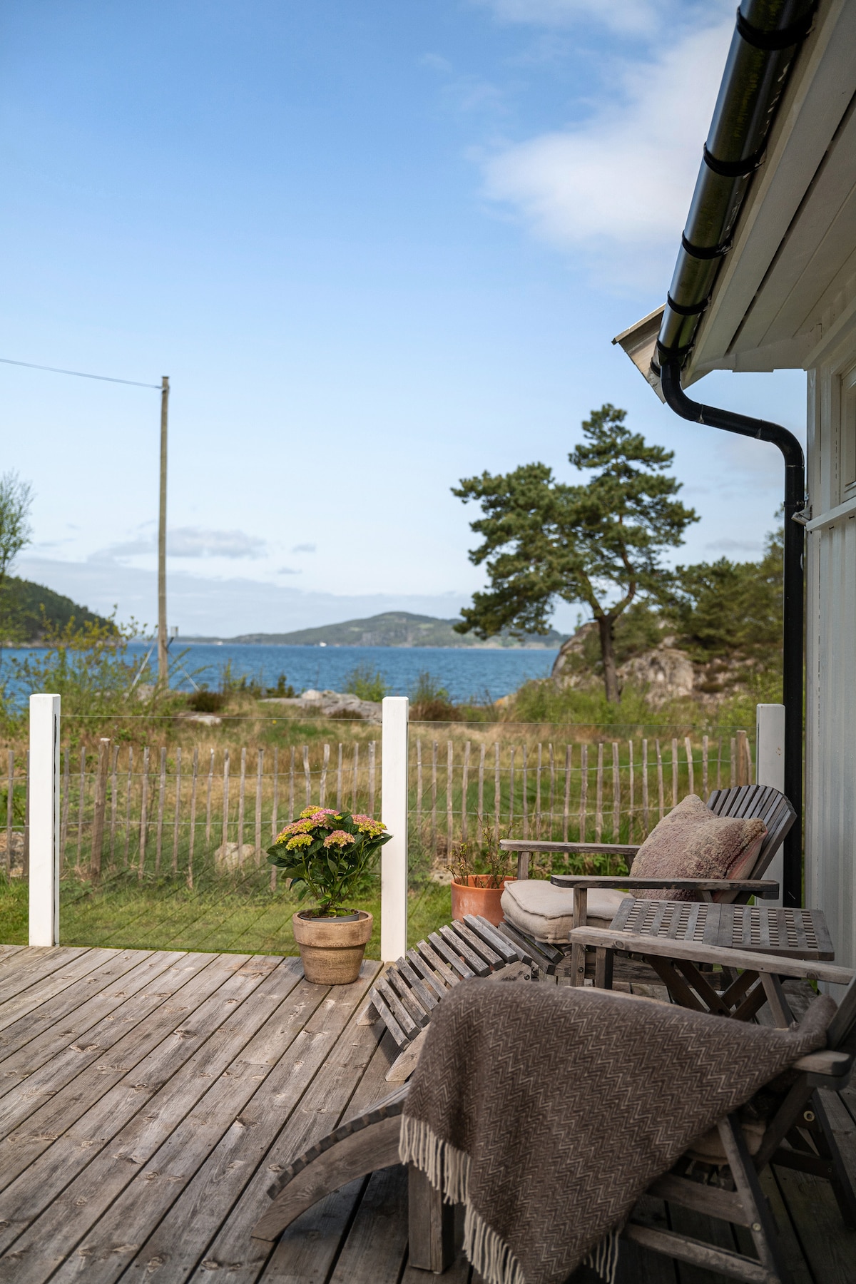 Nedstrand. Domek znajduje się tuż przy ścieżce do Himakånå i oferuje dobre warunki do wędrówek. Nieruchomość jest ogrodzona, dzięki czemu miejsce jest bezpieczne dla dzieci. Okno salonu ma wspaniały widok na morze. Sypialnia 1 ma 2 pojedyncze łóżka. Sypialnia 2 dla 3 osób: 1 łóżko piętrowe i 1 łóżeczko dziecięce o długości 150 cm. Pamiętaj o zwierzętach pasących się na zewnątrz obiektu. Bezpłatny parking znajduje się około 150 m od chatki, aby do niego dotrzeć, trzeba przejść stromą drogę. Wózek nie jest zalecany, ponieważ droga jest żwirowa.