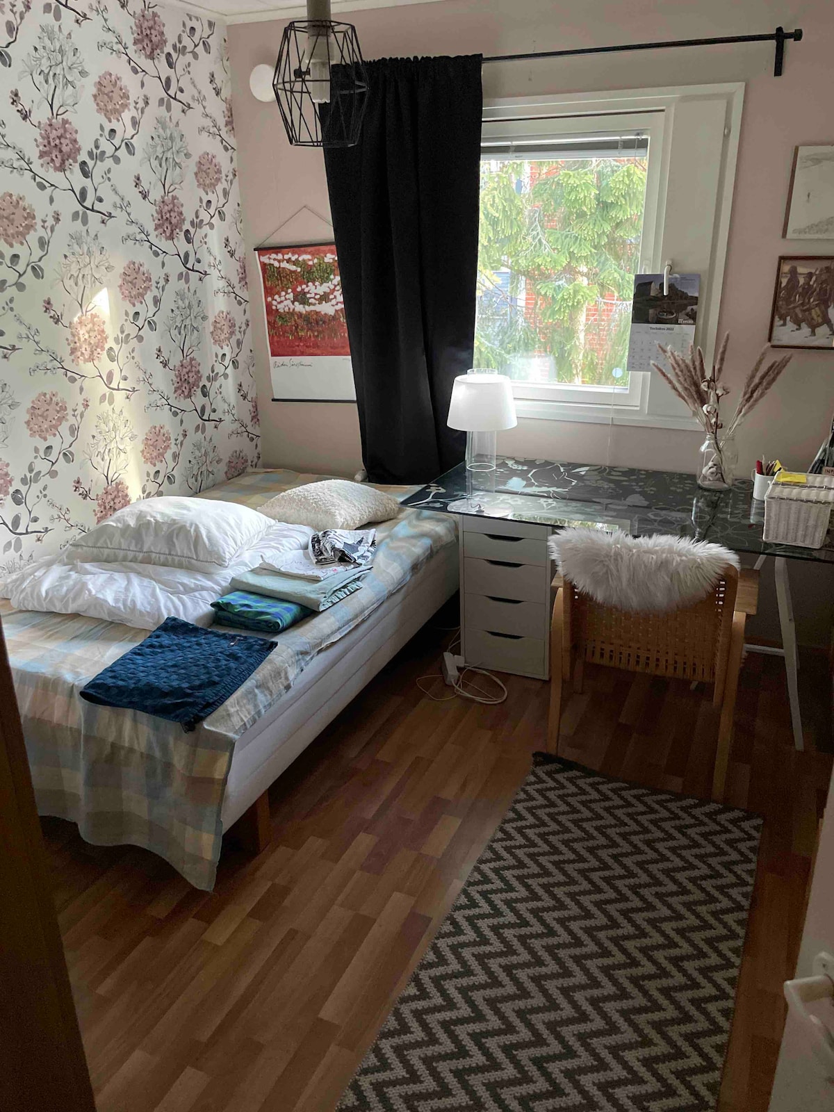 Tervetuloa kotiimme! Tähän upeaan kohteeseen mahtuu koko perhe tai isompi porukka. Kodikas ja perheystävällinen rivitaloasunto kahdessa kerroksessa. Kolme makuuhuonetta, sauna ja erillinen wc tarjoavat tilaa isommallekin seurueelle. Päämakuuhuoneen seinien maalaus on kesken, mutta se tuo persoonallista ilmettä. Huoneistossa on paljon viherkasveja sekä joulukuusi ja muita joulukoristeita. Rauhallinen taloyhtiö, jossa on ilmainen pysäköinti. Vain 5 min kävelymatka Oulunkylän juna-asemalle!