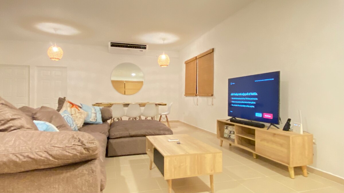 Zrelaksuj się z całą rodziną w tym spokojnym miejscu. Całodobowa ochrona. Prywatna plaża. Loft posiada w pełni wyposażoną kuchnię, idealną na dłuższe pobyty. Pierwszy pokój jest otwarty. Drugi pokój jest mały z rozkładanym łóżkiem i przesuwanymi drzwiami przez drzwi wejściowe. Jeśli chcesz użyć. W salonie znajduje się również rozkładana sofa. Internet i telewizja kablowa. Maksymalna dozwolona liczba osób to 4, dzieci poniżej 2 roku życia nie są wliczane. (Proszę przynieść własną wodę)