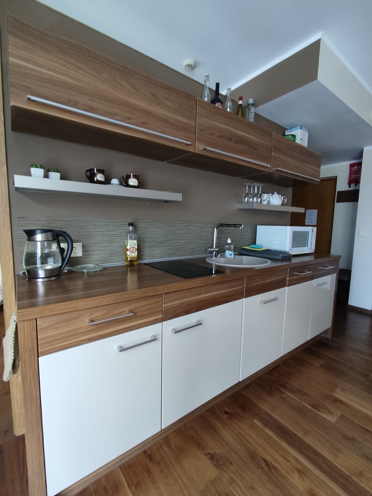 Mieszkanie wyposażone jest w pralkę, zmywarkę, ekspres do kawy, lodówkę, piekarnik, kuchenkę, naczynia do serwowania itp. Ładowarka do pojazdów elektrycznych. W promieniu 100 metrów znajduje się wiele restauracji i kawiarni z różnymi kuchniami na prawie każdy gust, na śniadanie, obiad i kolację. Mieszkanie znajduje się w cichej i zielonej okolicy, a tuż obok znajduje się stare miasto.