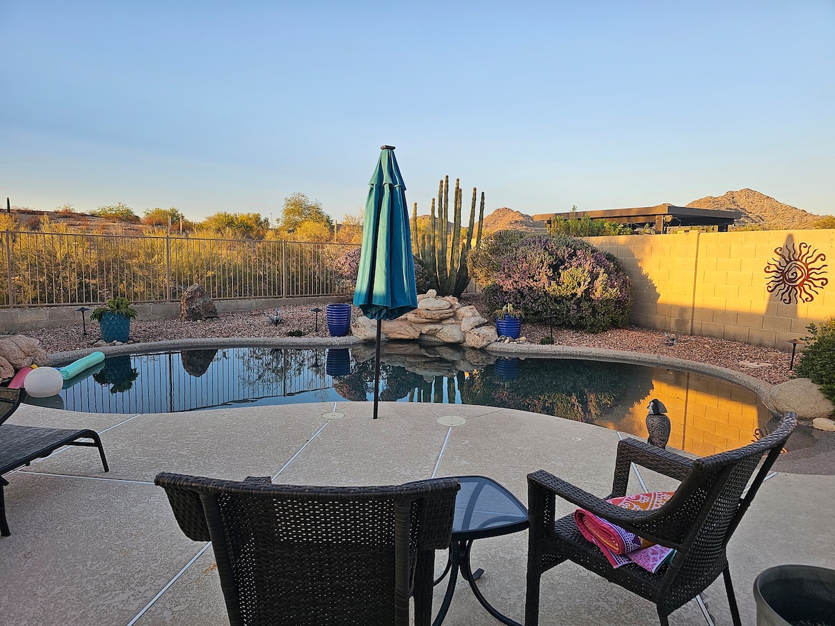 2 przecznice od South Lake. Ponad 33 mile szlaków do wędrówek, spacerów, kolarstwa górskiego i golfa. Pływaj w prywatnym, podgrzewanym basenie bez dodatkowych opłat. Odpręż się i zrelaksuj w tej spokojnej, stylowej przestrzeni. Dobrze zadbany dom z wyznaczoną przestrzenią do pracy, lepszy niż pobyt w hotelu. Zakaz palenia/zwierząt. * 5 minut do Safeway i Walgreens * 35 minut do lotniska Phoenix Sky Harbor. * 25 minut do stadionów NHL i NFL. *30 minut do stadionów NBA i MLB. * 15 minut do Phoenix International Raceway.