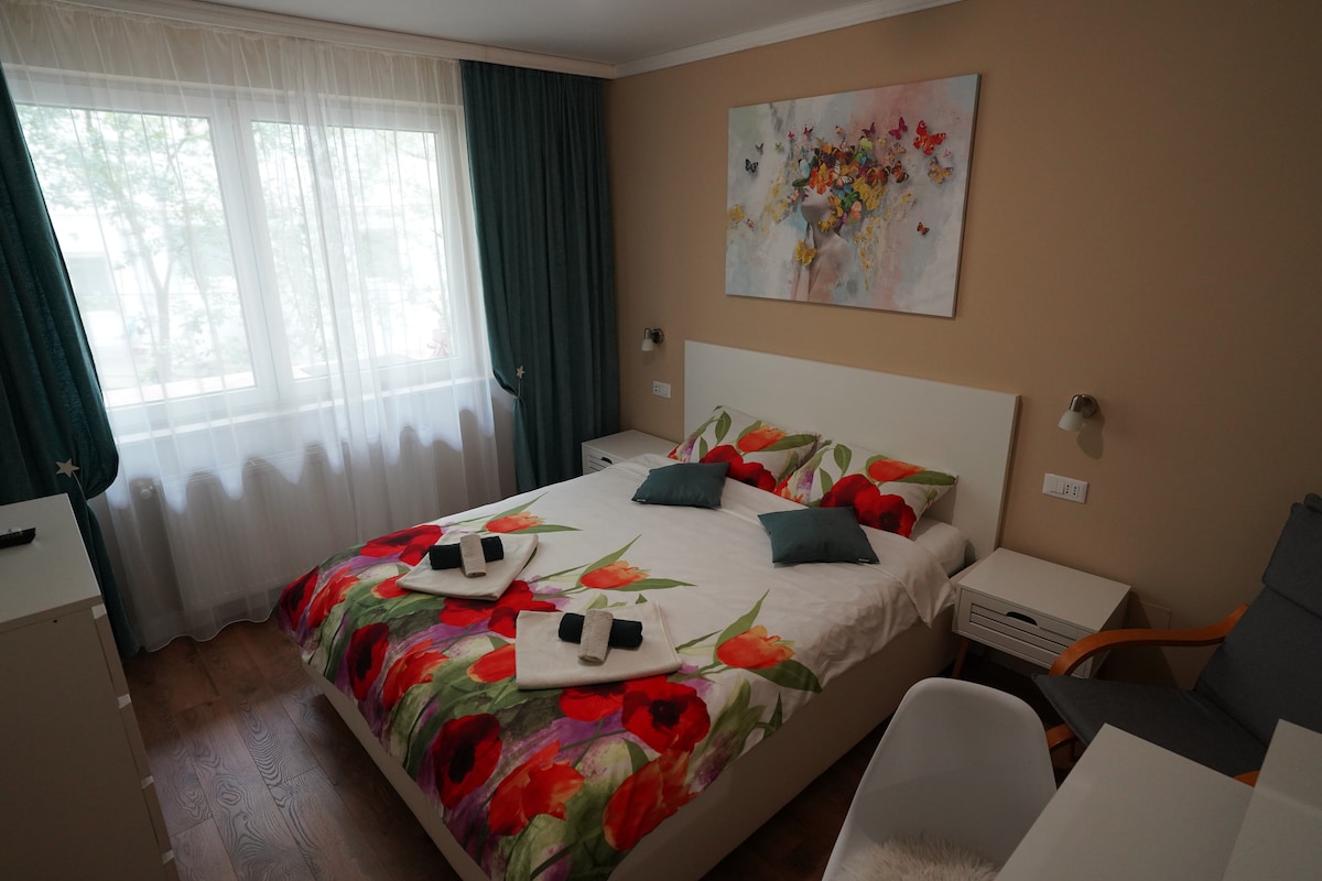 Lokalizacja znajduje się na str. Ploiesti, 10 minut spacerem od centrum. , idealne dla 1-2 osób. Od momentu, gdy wejdziesz do niego, da Ci poczucie dobrego samopoczucia dzięki pryzmowi wybranej chromatyniki i atmosfery, oferując przytulne doświadczenie. Wszystko jest nowe w najdrobniejszych szczegółach. Miejsce znajduje się na prywatnym dziedzińcu, hojnym z dużą ilością zieleni. Przed apartamentem znajdziesz relaksującą przestrzeń, która mija winorośl, która latem zapewni Ci cień, a jesienią zaoferuje smaczne winogrona.