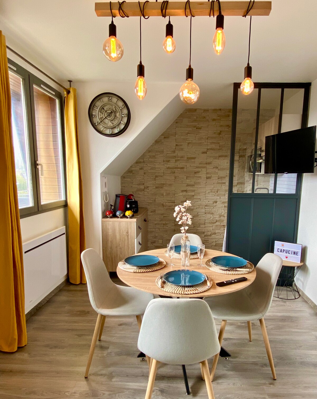 LOFT DU MARCHE W samym sercu Eu, pięknego normandzkiego miasta o bogatej historii, zapraszamy do naszego Loft du Marché, obiektu 3-gwiazdkowego o powierzchni 110 m2. Odnowiony w duchu atelier, apartament ten pozwoli Ci spędzić wspaniały pobyt z rodziną lub przyjaciółmi. Ten cichy apartament dwupoziomowy jest idealnie położony przy pięknych ścieżkach rowerowych prowadzących w kierunku plaż Mers les bains, Criel sur mer, Ault, portu Tréport i kilka kilometrów od zatoki Somme.