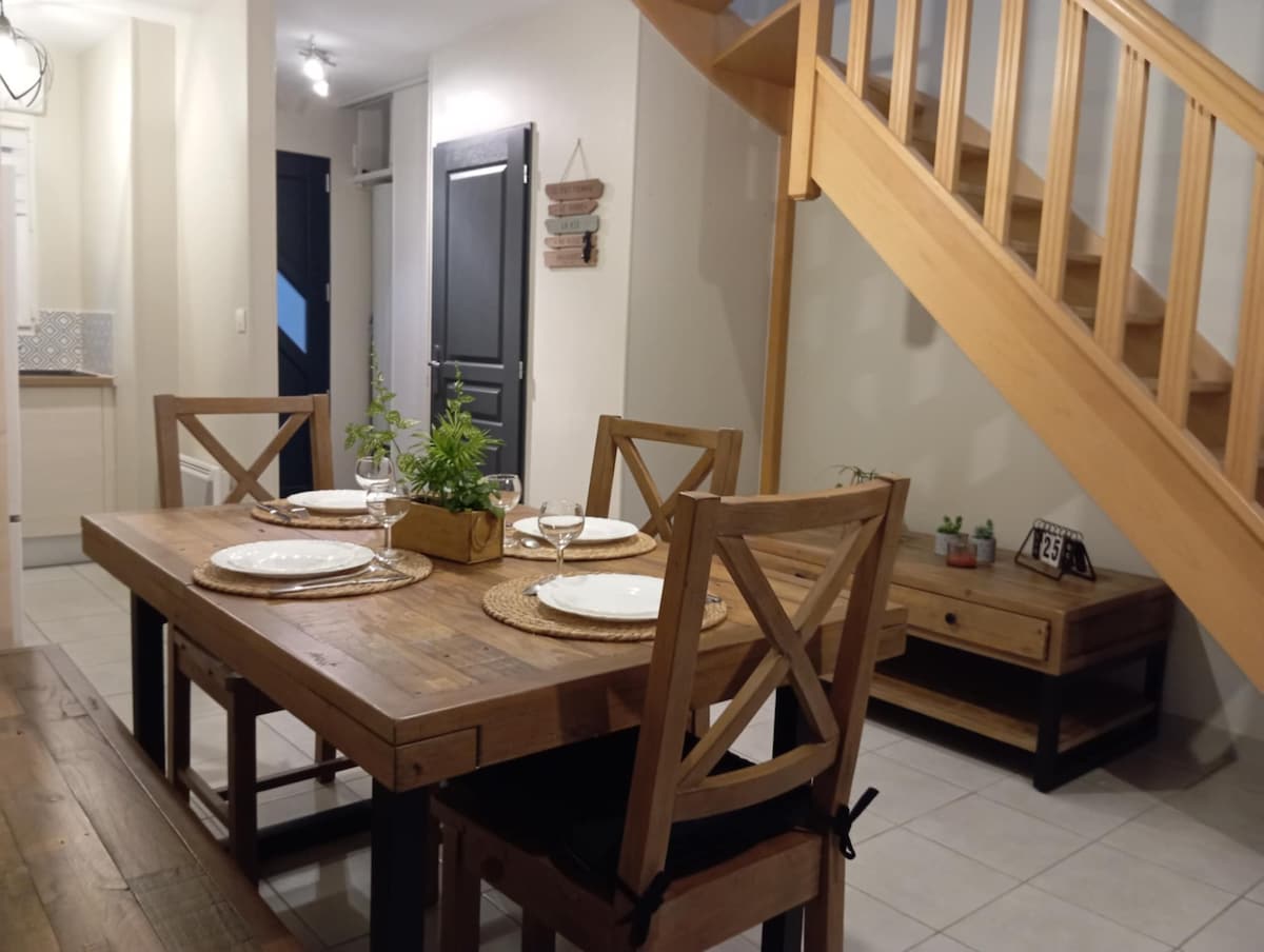 Apartament o powierzchni 32 m2 na pierwszym piętrze pięknego domu typowego dla dzielnicy Cordiers, położony 50 m od plaży, sklepów i kolejki linowej na klify. Odnowione mieszkanie, wyposażone i gustownie urządzone. Składa się z przytulnej sypialni z łóżkiem dla 2 osób, salonu z kuchnią (kuchenka mikrofalowa, piekarnik elektryczny, płyta elektryczna, ekspres do kawy Senseo), jadalni, kanapy, telewizora i łazienki z prysznicem. Pościel dostarczana bezpłatnie (prześcieradła i ręczniki) Łóżeczko dziecięce na życzenie Dzielnica Cordiers, słynąca z domów rybackich, jest idealnie położona w samym sercu turystycznego miasta Tréport. Wszystko jest dostępne w odległości 50 m: - Lokalne sklepy (piekarnia, sklep spożywczy, apteka, kiosk, restauracje...) - Rekreacja i turystyka (kolejka linowa na klify, plaża, kasyno JOA, port, park rozrywki i fitness ...) Lokalny targ w każdy wtorek i sobotę Dworzec kolejowy Le Tréport około 15 minut spacerem (dostępne regularne autobusy) Nie musisz mieć samochodu, aby cieszyć się pobytem. Apartament jest również idealnie położony do spacerów, pieszych lub rowerowych. W odległości 30 km znajduje się zatoka Somme z fokami i miasto St-Valery-sur-Somme. Jestem zawsze do dyspozycji, aby doradzić Ci w kwestii wycieczek, rozrywki, miejsc do odwiedzenia, barów i restauracji. Zrobimy wszystko, abyś chciał do nas wrócić! Elastyczne godziny przyjazdu/wyjazdu w zależności od dostępności