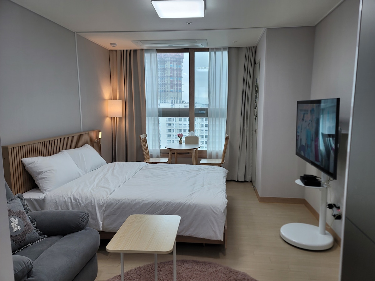 Central view suite Residence within 3 minutes of 2 subway stations *Front Desk & Luggage Storage & Guest Lounge: B1F (English & Chinese-speaking staff available, breakfast service (paid)) *non-smoking property. fine: 150,000 won. *A Coffee machine & welcome coffee capsule, bidet ,drinking water purifier *Everything you need like home. *2 guests will use one bed. If you prefer separate beds, please request in advance.(paid) *For 3 or more people, a sofa bed will be set up as a bed.
