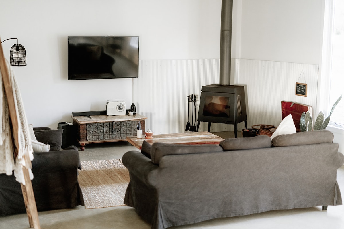 OFERTA SPECJALNA – 3 NOCE W CENIE 2 Zaledwie 2 godziny od Melbourne, na 65 akrach w rozległych Strathbogie Ranges, Maggies Lane Barn House to romantyczny apartament z jedną sypialnią dla par (nieodpowiedni dla dzieci). Zrelaksuj się w naszym przemyślanym, luksusowym miejscu poza siecią. W okolicy roi się od australijskiej przyrody, płynących strumieni, rodzimych ptaków, buszu i skalistych wychodni. Rozgrzej się przy drewnianym ognisku, podziwiaj widoki i pięknie urządzone wnętrza.