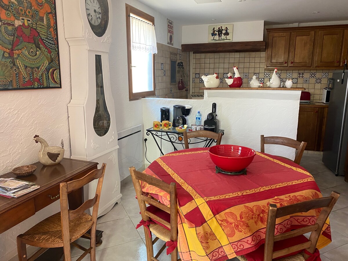 W wiosce zaliczonej do najpiękniejszych wiosek Francji najbardziej nasłonecznione mieszkanie położone na parterze charakterystycznego domu z kuchnią, salonem, łazienką Zapierający dech w piersiach widok na masyw Canigou, u podnóża szlaków turystycznych, w połowie drogi między morzem a górami. Łatwy dostęp do restauracji w wiosce