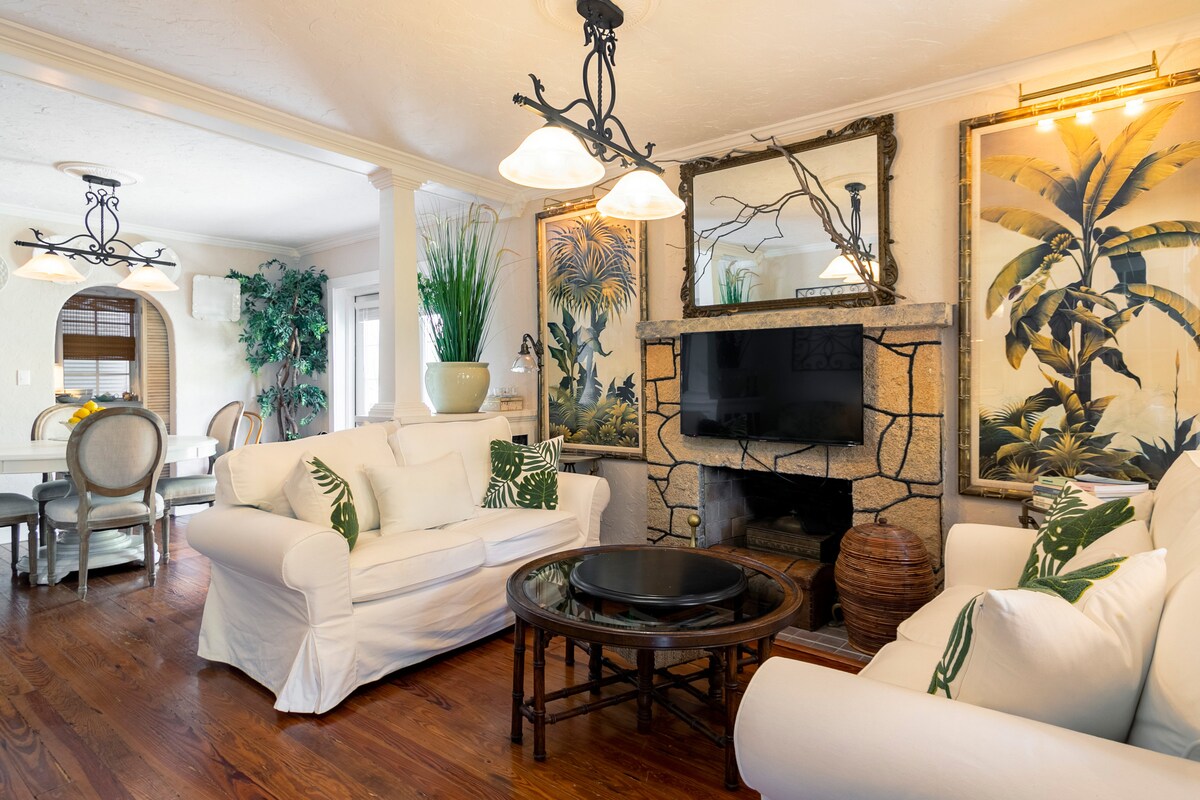 W Flamingo Park, dom w stylu hiszpańskim z 1925 roku, kunsztownie udekorowany przez Grace Griffins, emanuje elegancją. Wnętrza skąpane są w świetle słonecznym, które podkreśla starannie dobrane meble i zielone elementy. Zaledwie 13 minut spacerem od centrum West Palm Beach i 10 minut jazdy od plaż – piękno i wygoda w jednym miejscu. Ta rezydencja jest świadectwem kunsztu i designu, oferując wyrafinowanie w tętniącej życiem okolicy. *Przestrzeń na zewnątrz dzielona z domkiem gościnnym*