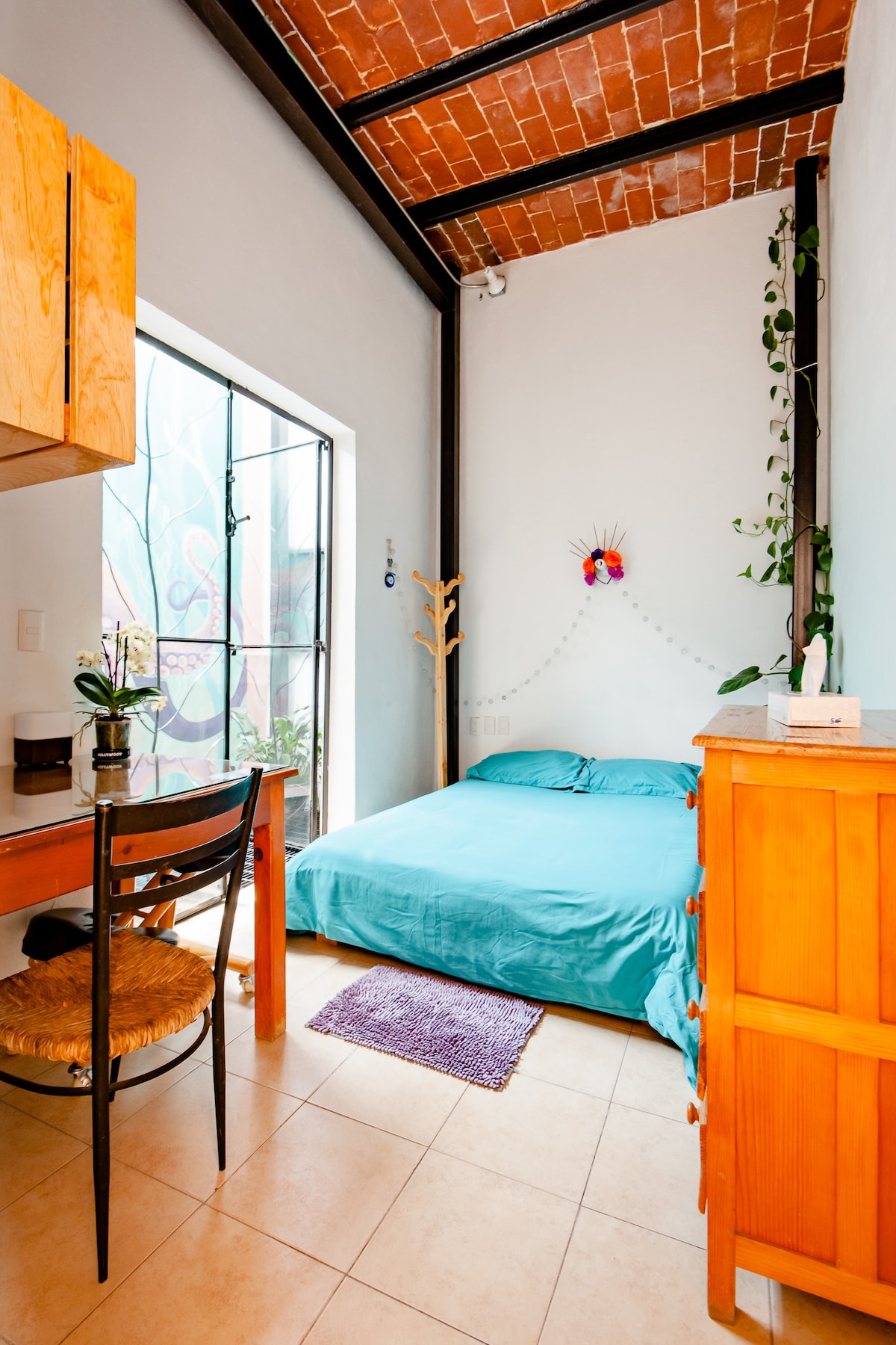 Przyjemny i przytulny pokój z prywatnym tarasem w sercu Coyoacán, jednej z najbardziej malowniczych i tradycyjnych dzielnic Meksyku. Położony 5 minut spacerem od centrum Coyoacán, tradycyjnych restauracji, kawiarni, bazarów rzemieślniczych i muzeów.