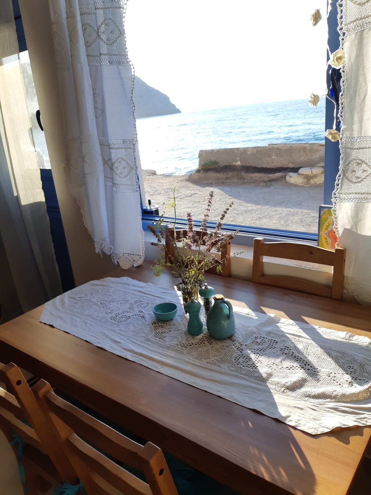 Willa przy plaży, położona w tradycyjnej wiosce archeologicznej Mochlos tuż nad wodą. Niesamowity, zapierający dech w piersiach widok na morze, zaledwie kilka kroków od plaży, a także od naszej wioski znanej ze świetnych tawern. Najlepsza kuchnia kreteńska, różnorodne lokalne przysmaki, świeże ryby, owoce morza, warzywa, kawiarnia i bary. Dom stoi twarzą do morza – po prostu weź ręcznik i zejdź prosto na plażę, zrelaksuj się i popływaj. Idealne dla par, osób podróżujących w pojedynkę i rodzin. Darmowe Wi-Fi, 1 godz. 15 min jazdy z Heraklionu.