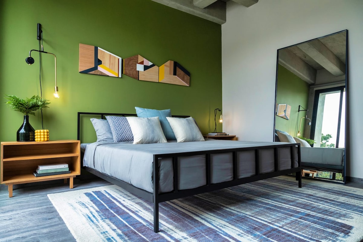 To jedno z naszych mieszkań w WIT. Nasze mieszkanie to najnowsze i najmodniejsze miejsce w mieście. Lokalizacja jest pełna fajnych kawiarni, restauracji i butików lokalnych projektantów. Ciesz się naszym basenem, napij się piwa na dachu z 360 widokami na miasto lub poczytaj książkę w artystycznej miejskiej ścianie namalowanej przez utalentowanego lokalnego artystę Enrique Larios. Dołącz do nas na sesję jogi o zachodzie słońca w każdy wtorek o 19:00, a także skorzystaj z bezpłatnego parkingu podczas pobytu! Mamy nadzieję, że odzyskasz kontakt ze swoją kreatywnością!