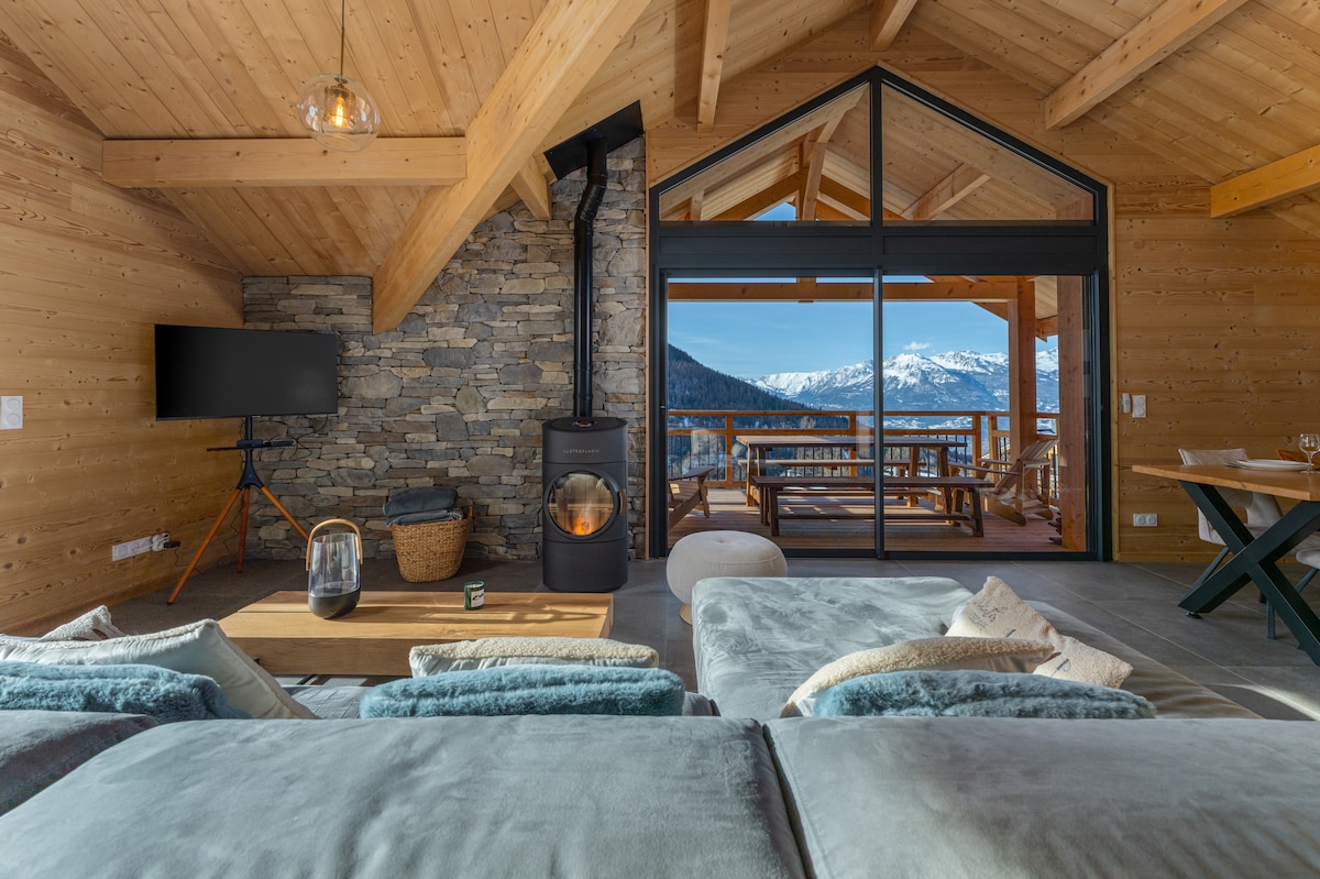 Luksusowa górska chata w samym sercu Briançon, z podgrzewanym letnim basenem i zadaszonym elektrycznym tarasem, jacuzzi , sauną. Chalet ideal for a family with 4 bedrooms, large living room and large terrace, relaxing net and pool house with a large island (plancha, deep fryer, sink) living room and toilet.. 800 m from the slopes of briançon you will enjoy sunshine facing south for skiing. Bezpłatny internet ze światłowodem. Przestrzeń dla dzieci ze ścianą wspinaczkową, małym salonem, różnymi grami i stołem do ping-ponga.
