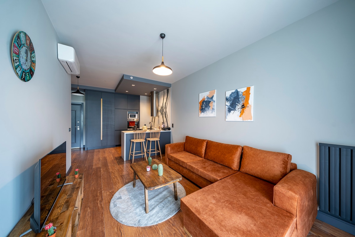Our 1+1 flat is in the very old and central neighborhood of Beyoglu. The flat is in a secured residence building with 7/24h surveillance. In the flats' entrance there's an incorporated wardrobe. The american kitchen has all the essentials: refrigerator, oven, hot plate and also the necessities. In the living-room you will find a 4K TV in front of the sofa-bed (in which 1 persons can fit). There's also an air conditioning. Besides, our bedroom has a King size bed with an orthopedic mattress.