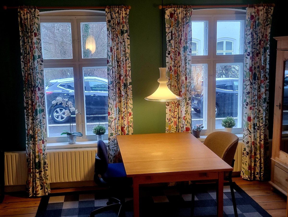 Dom to jasne i przyjazne mieszkanie położone w wysokiej piwnicy z oknami, które zapewniają dużo światła dziennego. Salon i sypialnia są szczególnie jasne i przestronne oraz połączone. Kuchnia i łazienka zostały odnowione w listopadzie 2018 roku i wyglądają nowocześnie i zadbanie. W mieszkaniu znajduje się magazyn, z którego korzystamy sami. Jednak staramy się unikać tego, gdy są goście. Podkreślam, że mieszkanie jest zawsze czyste i zadbane.