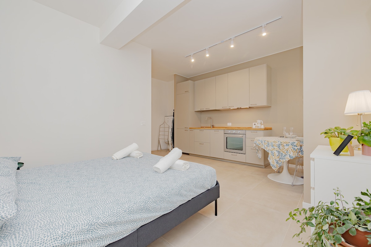 Studio, w pobliżu Uniwersytetu IULM, BOCCONI, NABA i szpitala San Paolo, niedawno odnowiony i położony na drugim piętrze budynku z lat 30. XX wieku z wewnętrznym widokiem. Bardzo jasne, ciche, dobrze skomunikowane z centrum Mediolanu komunikacją miejską i ze wszystkimi udogodnieniami. Kuchnia wyposażona w kuchenkę mikrofalową, kuchenkę indukcyjną, ekspres do kawy, czajnik, toster i pralkę. Okolica jest obsługiwana przez restauracje i sklepy (supermarket i apteka pod domem).