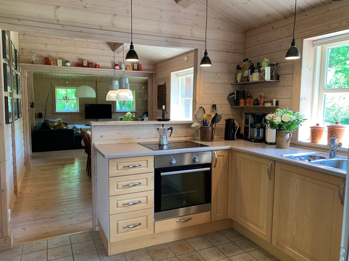 Lækkert bjælkehus med 3 værelser/ 7 senge. Beliggende på stor og ugeneret grund for ende af lukket vej, kun 900m fra skøn badestrand. Køkken og stue i åben forbindelse. Moderne og afslappet indretning og loft til kip giver en skøn rum-fornemmelse. Kæmpe have med flere terrasser, heraf to overdækkede. Huset er helårs -og velisoleret med dejligt indeklima. Huset er veludstyret med alt hvad I har brug for til madlavning. OBS: Medbring selv sengelinnede/ håndklæder, eller lej det når I booker.