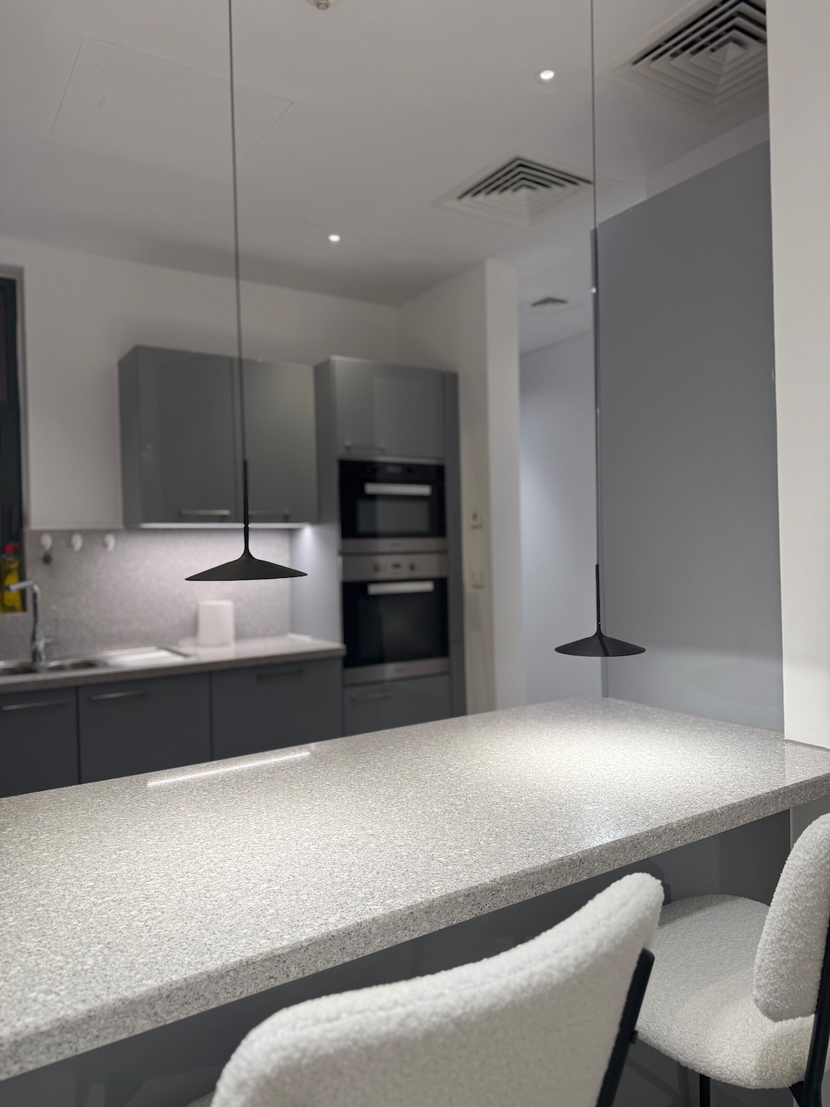 Nowoczesne, przytulne mieszkanie w centrum Muscat – blisko głównych atrakcji i łatwy dostęp do miasta. Oferuje telewizor Smart TV, szybkie Wi-Fi, w pełni wyposażoną kuchnię i wygodne meble. Idealne dla podróżnych szukających komfortu i wygody w samym sercu Maskatu. Budynek ma basen na dachu, prywatne kino, a także całodobową ochronę i prywatny parking na miejscu. Najbliższy supermarket znajduje się 7 minut spacerem, a plaża 1,2 km.