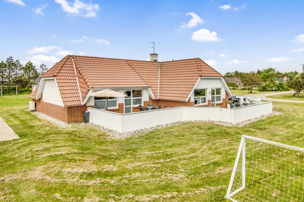 Wyjątkowy luksusowy domek położony w pierwszym rzędzie na zachodnie morze i w pobliżu Blåvand Lighthouse. W domu znajduje się spa na świeżym powietrzu, grill gazowy, duże miejsce parkingowe, meble ogrodowe, ogrodzony ogród na podwórku, w którym można usiąść w schronisku od zachodu wiatru, 4 duże sypialnie, z których jedna ma własną łazienkę, duży stół, bilard, piłkarzyki, dużą narożną sofę. Pierwsze piętro wychodzi na wodę
