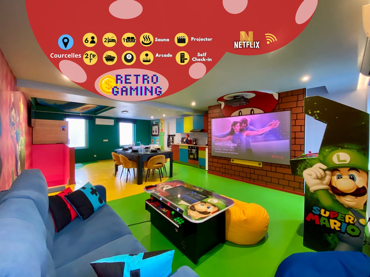 Pokój nastrojów Gry retro · Arcade · Jacuzzi · Sauna