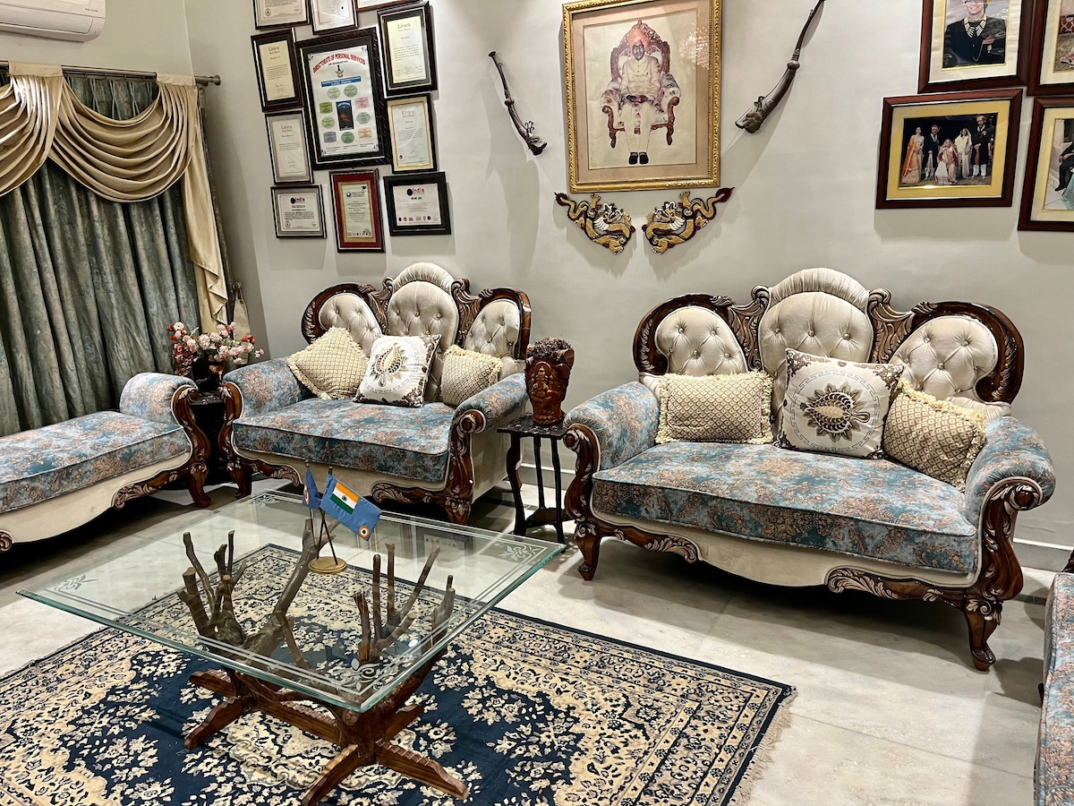 Welcome to our modern yet heritage-inspired villa featuring 2 comfortable beds, a private kitchen, and a private bathroom. Conveniently located just a 2-minute walk from Agra Airport, and close to major attractions like the Taj Mahal, Agra Fort, and others (approx. 5 km / 20 mins). Our space is perfect for tourists, business travelers, seniors, families, and even pets. We’re happy to assist with taxi arrangements, homemade meals, and other needs to make your stay smooth and enjoyable.
