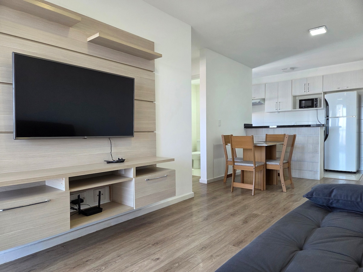 Nowoczesne studio w Civic Center – idealne dla osób, które cenią sobie komfort, praktyczność i doskonałą lokalizację w Curitibie. Klimatyzowane środowisko, wyposażona kuchnia i telewizor Smart TV — idealne do wypoczynku lub pracy. 🛏️ Pomieści w komfortowych warunkach do 4 osób, wysokiej jakości pościel. • Podgrzewany basen • Siłownia • Sauna • Taras • Pranie (płatne) 🚗 Parking dostępny w budynku, 35 BRL za noc Płatność za pośrednictwem PIX na rzecz gospodarza.
