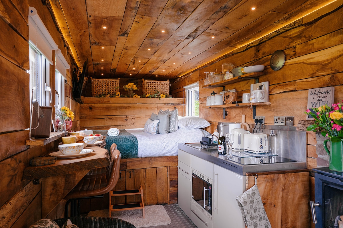 Ucieknij do Greenacre Cabin, uroczego wiejskiego glampingu w tradycyjnej walijskiej dolinie, idealnego na spokojny wypoczynek. Chata znajduje się na naszym małym gospodarstwie w pobliżu stajni i stodoły. To autentyczne wiejskie doświadczenie. Obudź się przy dźwiękach pasących się owiec, zjedz śniadanie na prywatnej werandzie i obserwuj konie wędrujące po polach. Świeże jajka od naszych kur z wolnego wybiegu i sezonowe produkty z ogrodu to tylko część uroku tego relaksującego wypadu na walijską wieś.