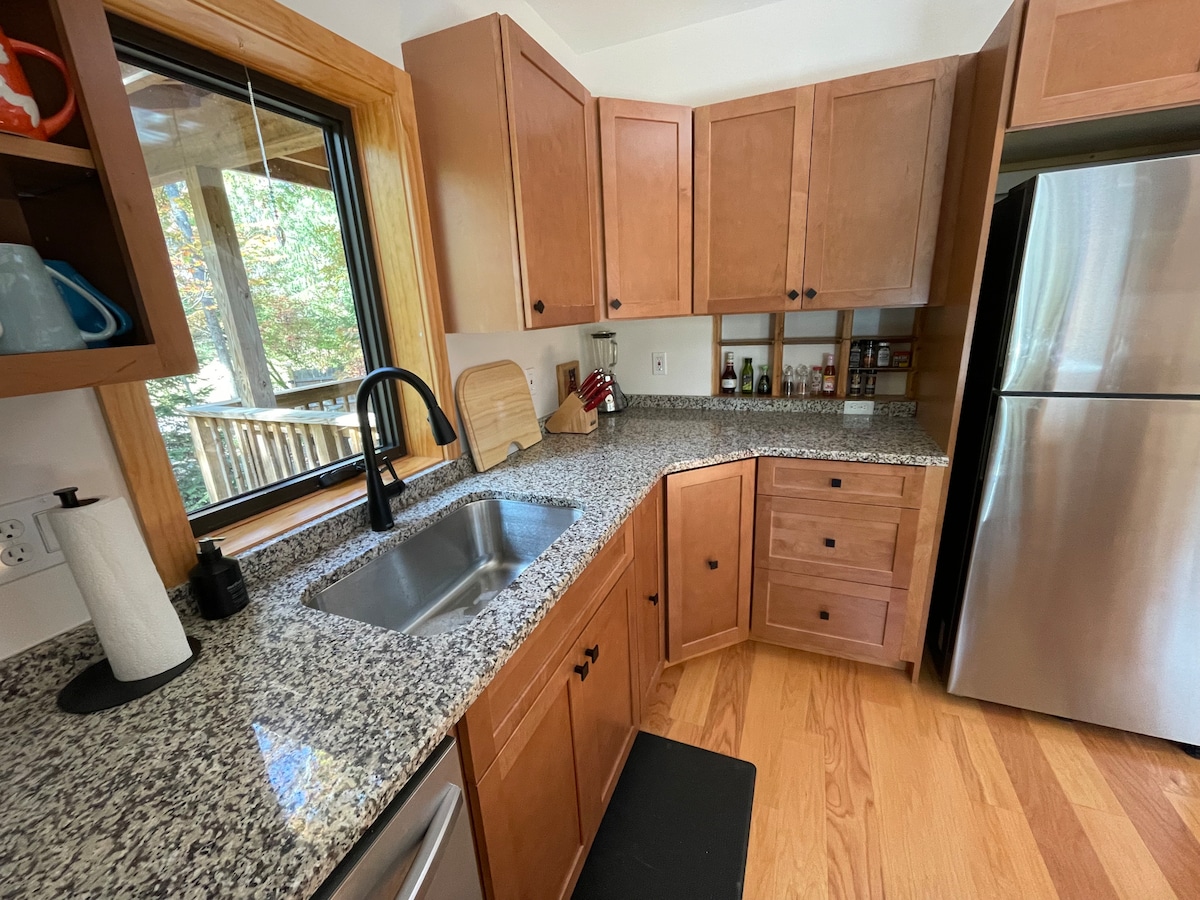 Położona na skraju lasu i nazwana na cześć mieszkającej tu sowy, Hooting Haus to chatka w stylu europejskim, która znajduje się w pobliżu wszystkich atrakcji Penn State. Rustykalny urok kuchni dla smakoszy podkreśla wyspa cynkowa, blat z bloku rzeźniczego i ściana z kamienia naturalnego. Zaproś gości do stołu z drewna sosnowego, wykonanego przez rzemieślników, i zjedzcie wspólny posiłek przy zabytkowym kominku. Zrelaksuj się w jacuzzi, a potem spędź wieczór, dzieląc się historiami pod rozgwieżdżonym niebem, siedząc przy ognisku z kieliszkiem rozgrzewającego grogu lub kubkiem gorącej czekolady.