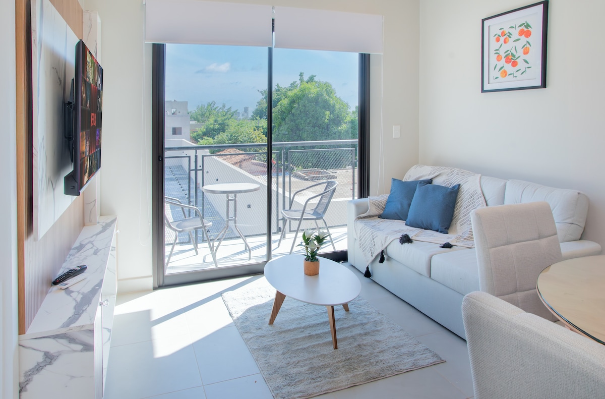 Nowoczesne, komfortowe studio z naturalnym światłem przez cały dzień. Posiada balkon z otwartym widokiem, idealny do relaksu lub pracy. Dogodnie położony, blisko wszystkiego, ale z dala od hałasu centrum. Budynek oferuje basen, siłownię, grill, pokój spotkań z projektorem i telewizorem, pokój do gier karcianych, pokój dziecięcy z telewizorem i pralnię z pralkami. Wyposażony w klimatyzację, Wi-Fi, telewizor Smart TV, pełną kuchnię i biurko. Idealne na krótkie lub długie pobyty. Może pomieścić do 3 osób.