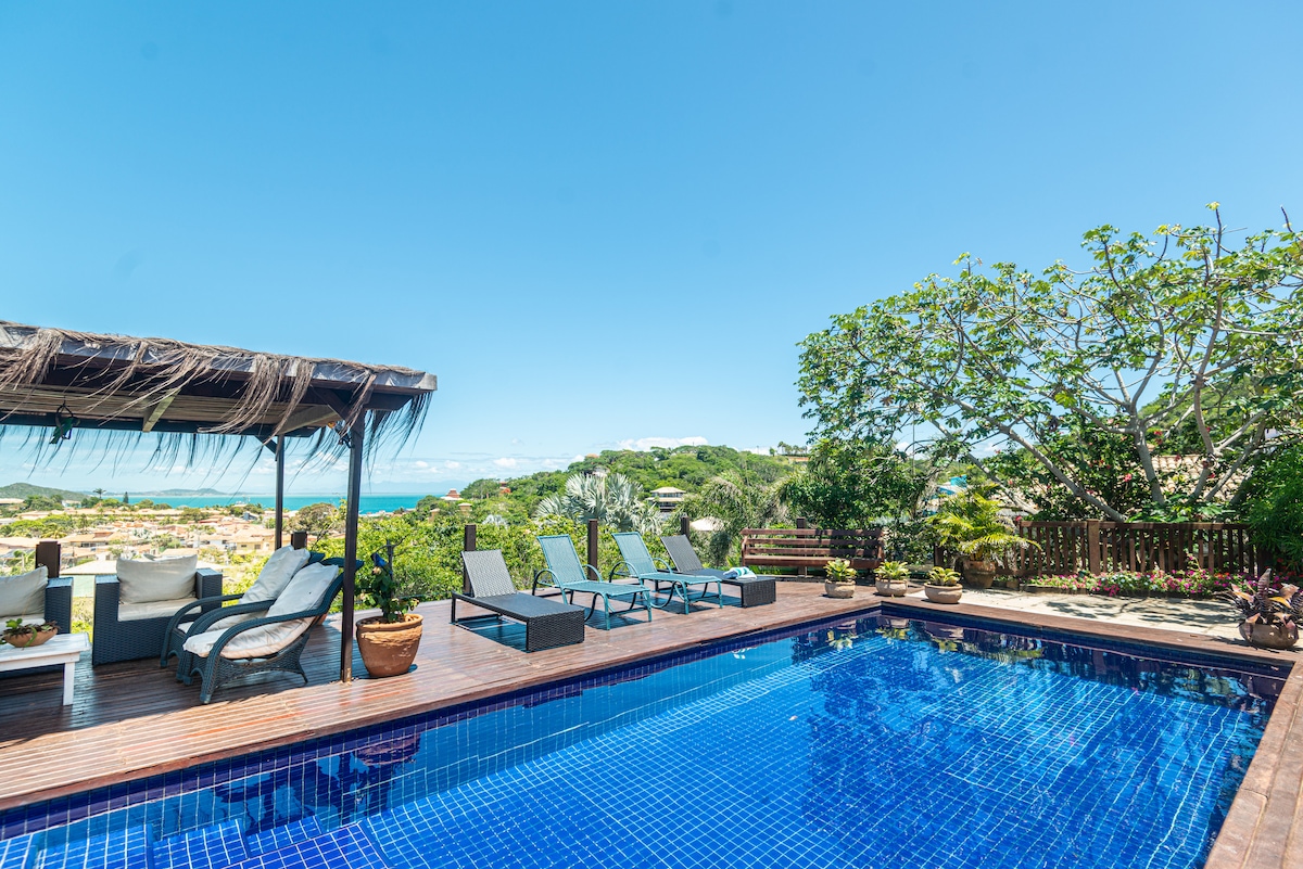 Ta prywatna oaza położona w rezerwacie przyrody oferuje wspaniałe panoramiczne widoki na ocean w Búzios i piękne zachody słońca. Otwarta przestrzeń jest idealna na spotkania z rodziną i przyjaciółmi w przestrzeni wewnętrznej i na zewnątrz. Zrelaksuj się w basenie bez krawędzi, pokoju gier lub gotuj na grillu i w piecu do pizzy opalanym drewnem na przestronnym tarasie. Wewnątrz zrelaksuj się w przytulnym salonie i wyśpij się wygodnie. Hamaki na każdej werandzie i eleganckie akcenty – zapraszamy gości do pełnego podziwiania piękna Búzios!