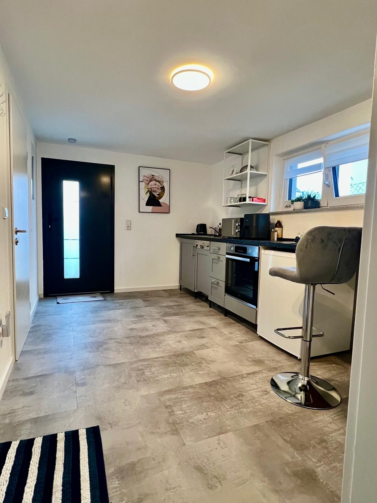 Ładne, ciche, 1-pokojowe nowe mieszkanie (Villa 1) w Bernhausen Filderstadt z oddzielnym wejściem, prywatną łazienką, oddzielną toaletą. Dla maksymalnie 3 osób. Wyposażenie: telewizor, Wi-Fi, nowa kuchnia ze zmywarką i pełnym wyposażeniem (+ ekspres do kawy), pościel, ręczniki, pralka i suszarka. Centrum (3 minuty pieszo) z wieloma udogodnieniami, takimi jak piekarnia, supermarket, restauracje, browar i bezpośrednie połączenie z S-Bahn. - Lotnisko 5 min. - Centrum Stuttgartu 25 min.