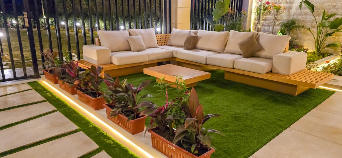 Obudź się i podziwiaj zapierający dech w piersiach widok na starożytne piramidy w Abusir. Wspaniała willa z 5 sypialniami, domkiem gościnnym, basenem, bujnym ogrodem, siłownią, pokojem zabaw i domkiem na drzewie. Może pomieścić 10 osób. Zaprojektowany przez wielokrotnie nagradzanego architekta Ahmada Hamida (World Architecture Award 2010), zainspirowanego Hassanem Fathy. 20 min do piramid w Gizie i Wielkiego Muzeum Egipskiego. Kolekcja dzieł sztuki osobiście wyselekcjonowana przez właścicielkę Tayę Elzayadi. Możliwość wynajęcia prywatnego szefa kuchni. Spokojne miejsce na wypoczynek dla rodzin, gdzie spotykają się historia, sztuka i luksus.