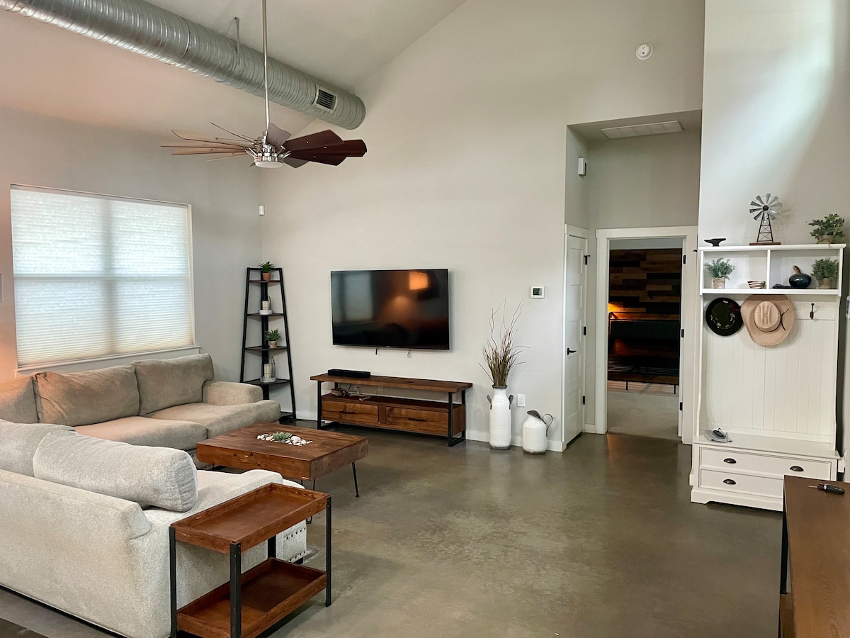 Wejdź do kolorowego i inspirującego świata ciepłej przytulności i luksusowego przepychu. Ta wspaniała przestrzeń jest pięknie umeblowana z gustownymi akcentami artystycznymi. Oferuje spokój, ciszę, przestronność i inspirację! Artistic Cabin oferuje w pełni wyposażoną kuchnię, pralkę, grill, stół z kominkiem i nowy telewizor Smart TV. Położony w samym sercu Texas Hill Country, znajdujemy się zaledwie osiem minut jazdy od Whitewater Amphitheater i Tubing on the Guadalupe!!