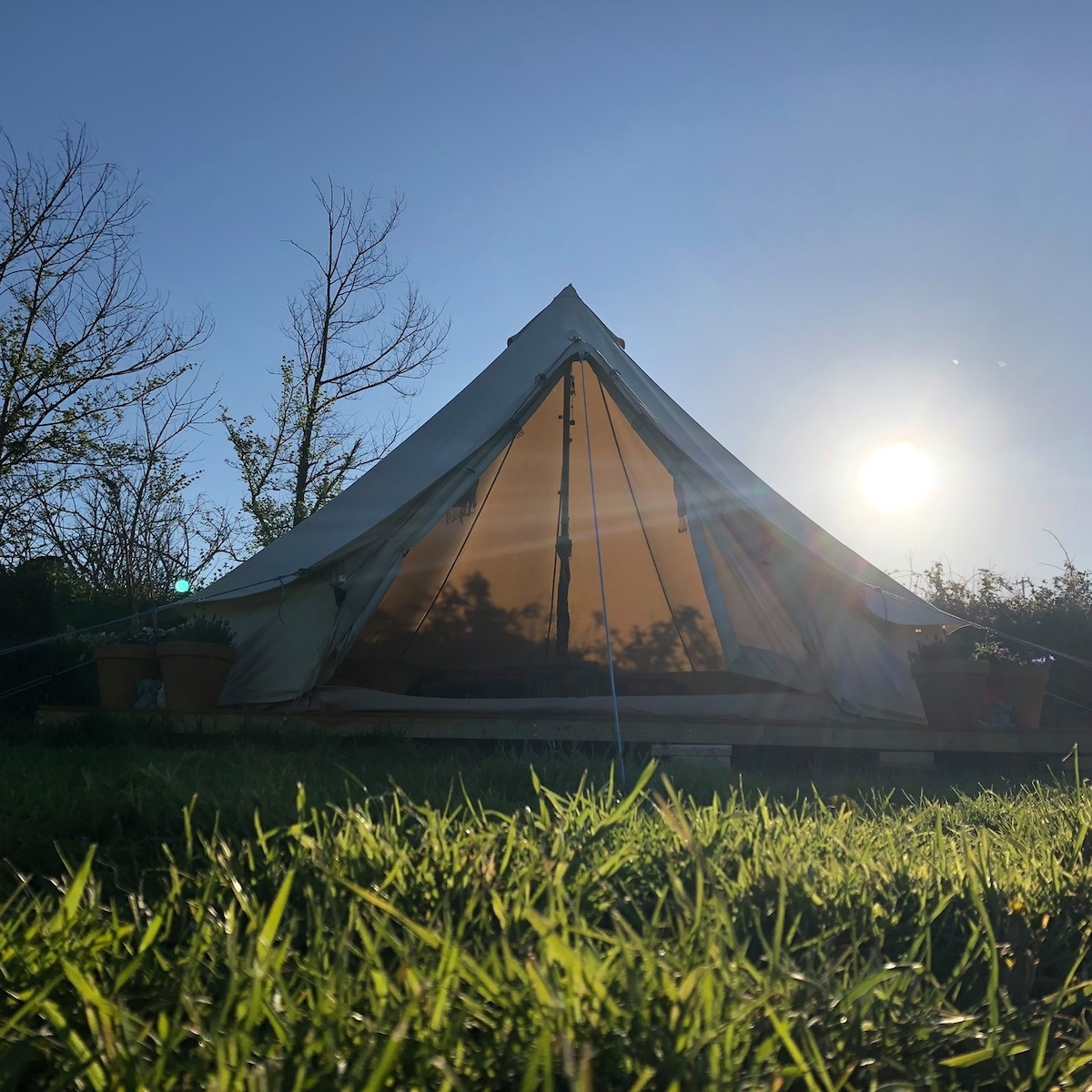 Cozy bell tent farm stay in Cornwall in 'Barn Owl'