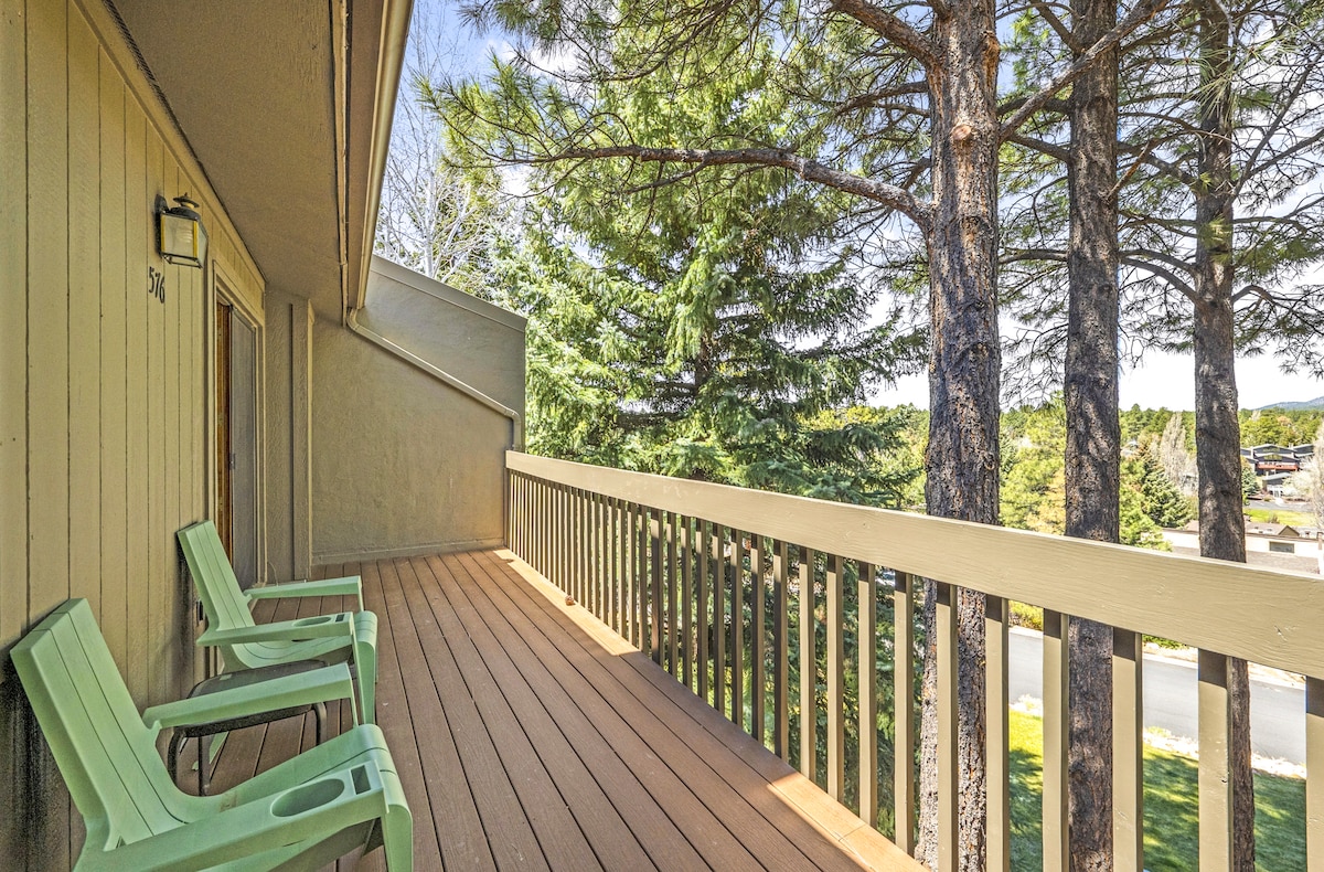Enjoy our cozy, 2 bed, 2 bath condo that's nestled in the peaceful pines of Continental Golf Course. Escape the hustle & train noises from right in town but only 4.6 miles to downtown Flagstaff & centrally-located to all your best spots. Just minutes to restaurants, coffee, grocery stores, shopping, movie theater, & the Mall! Guests love the natural gas fireplace & large balcony with beautiful views of the Peaks! Golfers dream spot! Short drive to enjoy Arizona Snowbowl Ski Resort or Sedona!