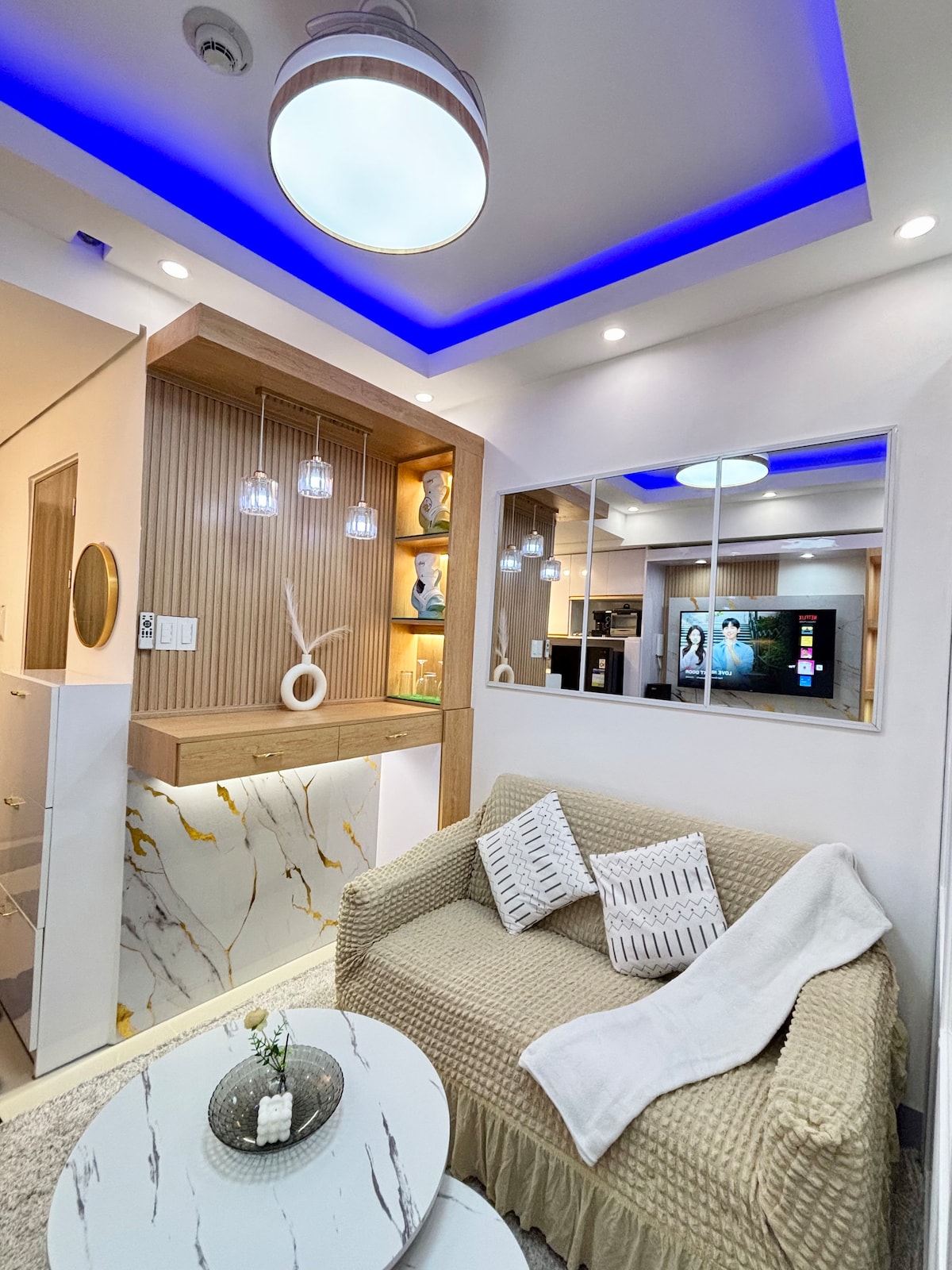 W pełni umeblowane luksusowe mieszkanie narożne z 2 sypialniami i balkonem Nasze miejsce w sercu Mandaluyong, położone w SMDC FAME Residence wzdłuż EDSA, jest idealne dla każdego, kto musi być w centrum dzielnicy biznesowej, jednocześnie ciesząc się miejscem Darin. W okolicy znajduje się supermarket Savemore i wiele restauracji. Okolice: SM Megamall Greenfield District Crossing Centrum handlowe Shangri-la. Adres: Mayflower Street, Brgy. Highway Hills, Mandaluyong City (wzdłuż EDSA, Greenfield District)