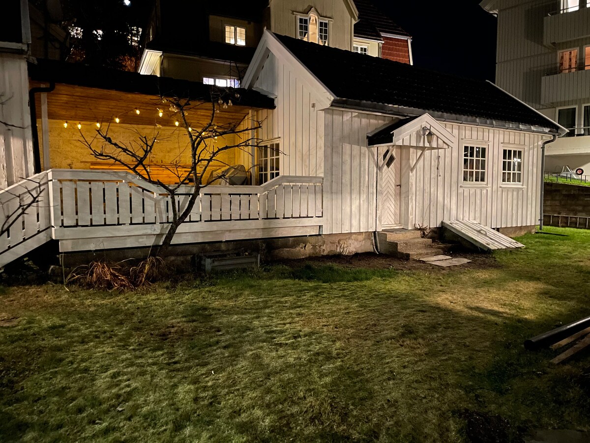 Studio ligger i sjarmerende Hidragaten med hvitmalte trehus, idyllisk beliggenhet i fredelig nabolag. Perfekt for deg som søker ro og historisk sjarm. Passer for 1 person eller max 2 personer. God seng med dyner og puter. Obs sengebredde 120 cm. Kjøkken er utstyrt med det du trenger for å kokkelere: kaffemaskin, oppvaskmaskin, komfyr, steikeovn, mikrobølgeovn og kjøkkenutstyr. Bad med dusjkabinett inkludert håndklær. Vaskemaskin. Koselig uteplass i bakgården med plass til div utstyr.