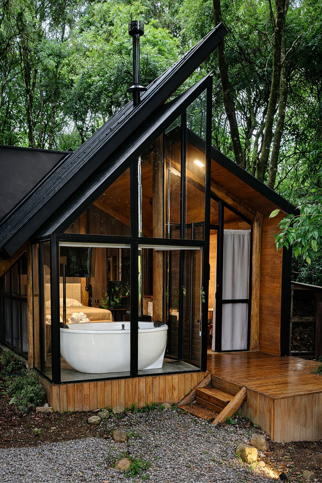 Jeśli szukasz komfortu i kontaktu z przyrodą, ta chatka jest idealnym miejscem. Zainspirowany rustykalnym urokiem stanu Missisipi, łączy amerykański styl country z ciepłem gaucho. Idealne dla par, małych rodzin lub podróżnych, którzy cenią styl i wygodę. • Amerykańska architektura w stylu stodoły z akcentami południowych Stanów Zjednoczonych • Przytulna i starannie urządzona atmosfera Poczuj się jak w uroczym domu na amerykańskiej wsi – bez opuszczania Brazylii