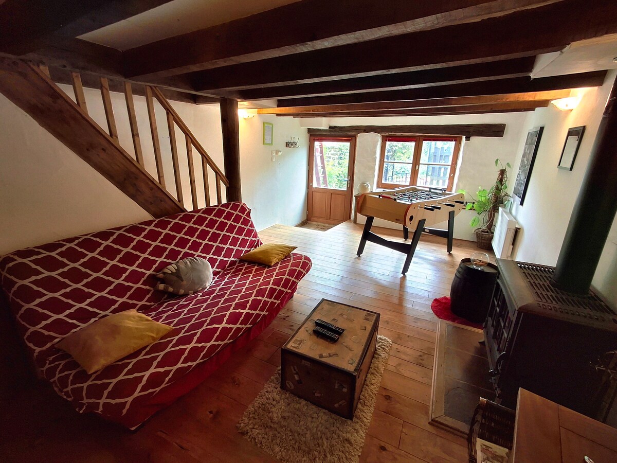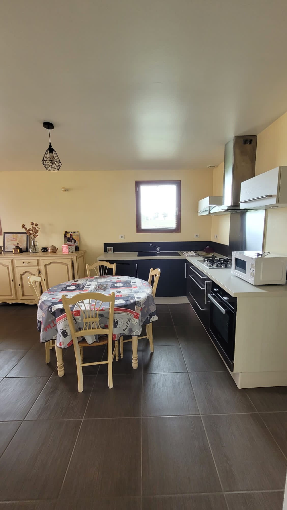 Vous logerez dans l'agrandissement de notre maison de campagne. Vous trouverez tout ce qu'il vous faut pour passer un séjour au calme. Logement spacieux avec une cuisine, une salle de bain avec douche à l'italienne, un couchage clic-clac en bas idéal pour les enfants et une chambre en mezzanine non fermée à l'étage. Enfin vous profiterez d'une magnifique vue dans le salon avec également un accès terrasse.